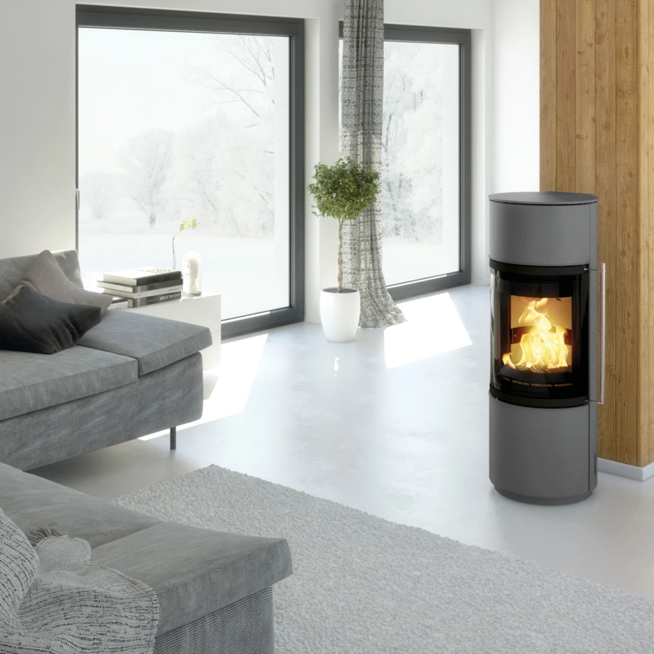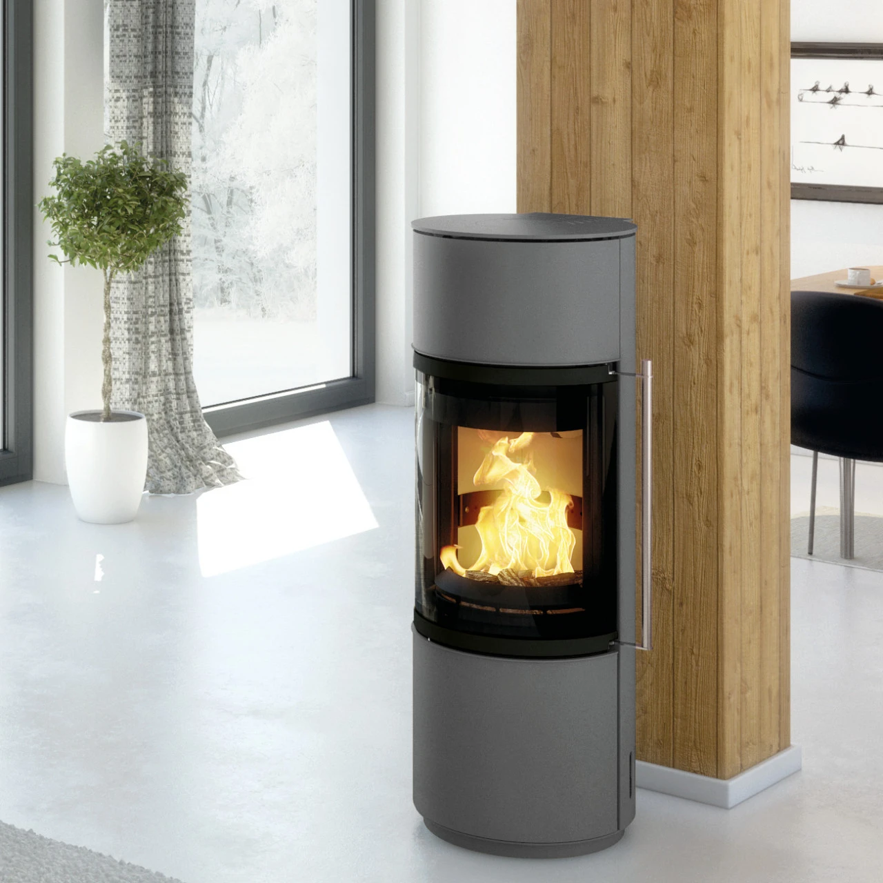 - Form des Kamins: Rund;