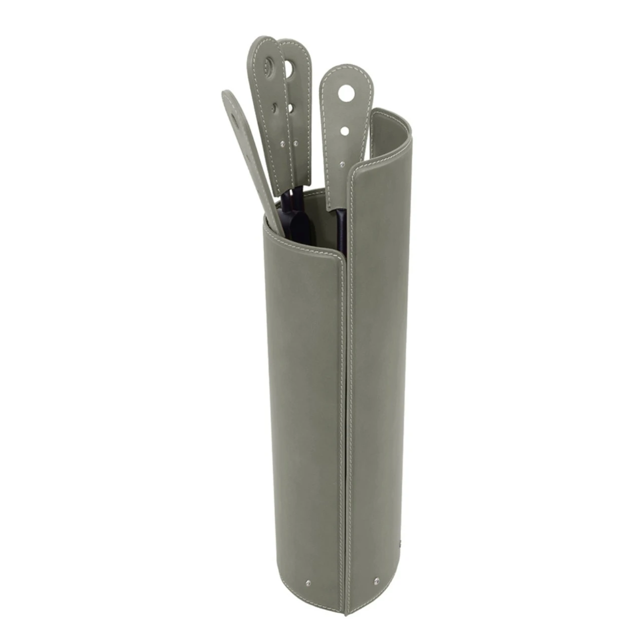 Set bestehend aus Kaminbesteckhalter aus Leder mod. „Ajela“ und 4-teiliges Kaminbesteck mit Ledergriff mod. „Lara“