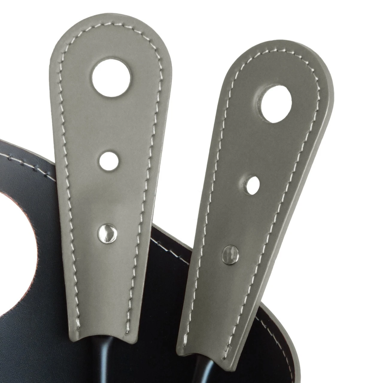 Material Kaminbesteck: Regeneriertes Leder und Schwarz lackierter Stahl