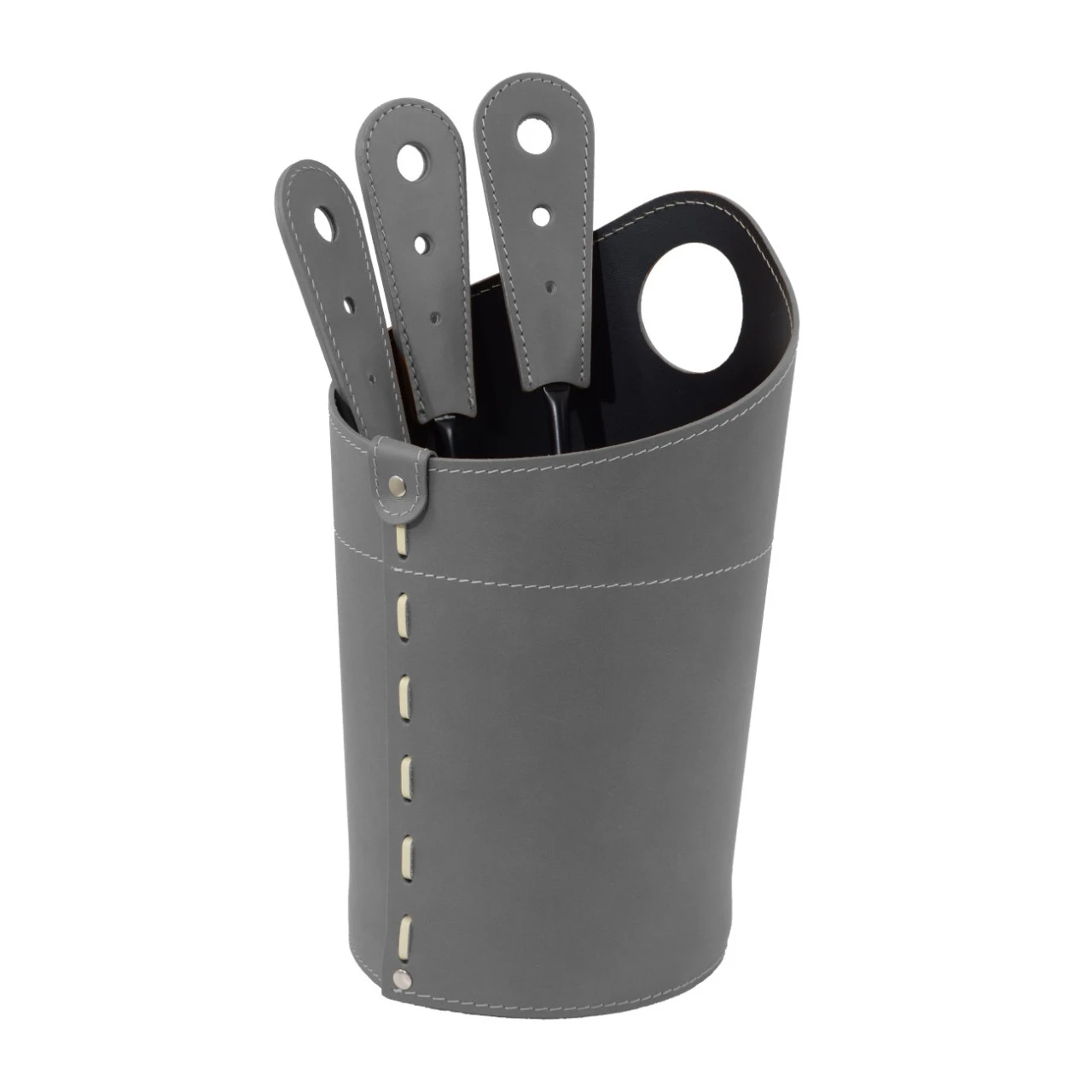 Set bestehend aus Kaminbesteckhalter aus Leder mod. „Brogio“ und 3-teiliges Kaminbesteck mit Ledergriff mod. „Corla“