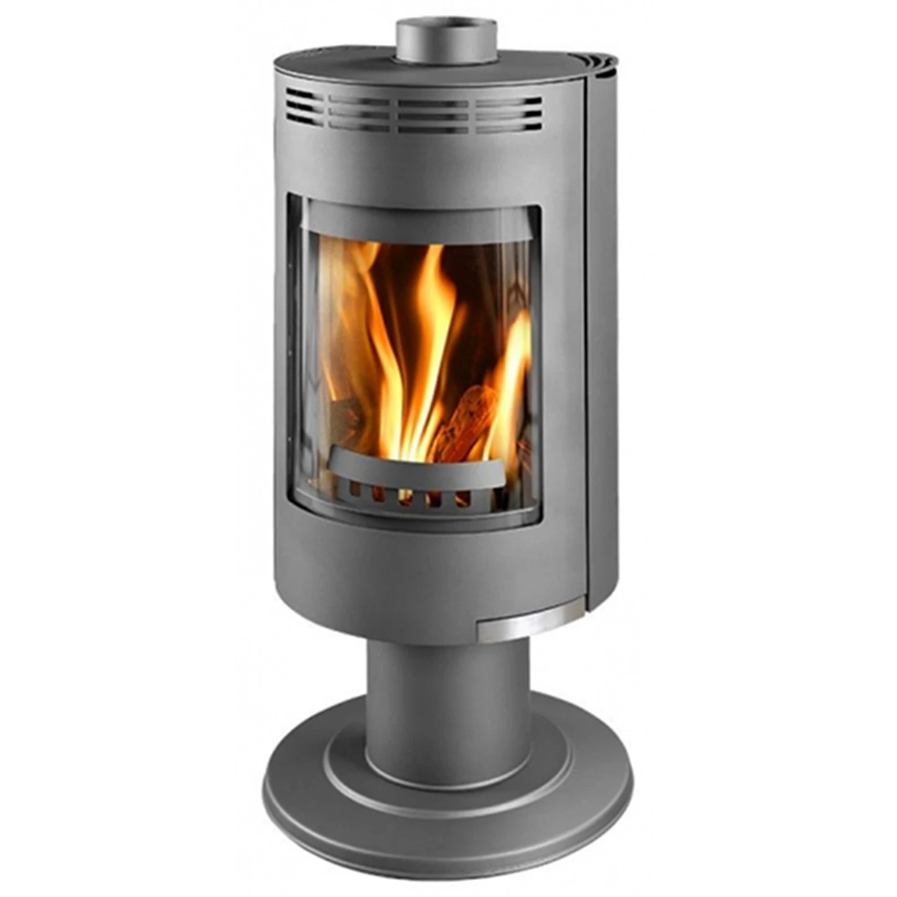 Der Sockel kann um jeweils 90° gedreht werden, durch ein hochwertiges Kugellager rastet er sicher alle 15° ein. So kann die Sichtscheibe an beliebige stelle hinzeigen. Externe Luftzufuhr sowie formgepresster Vermiculite im Brennraum ergeben einen sehr hohen Wirkungsgrad mit über 80 Prozent. Die Panoramascheibe, und der versenkte Türgriff heben die schöne Form ab, und runden die Ideen des Gesamtbildes des Andorra Kaminöfen ab.
