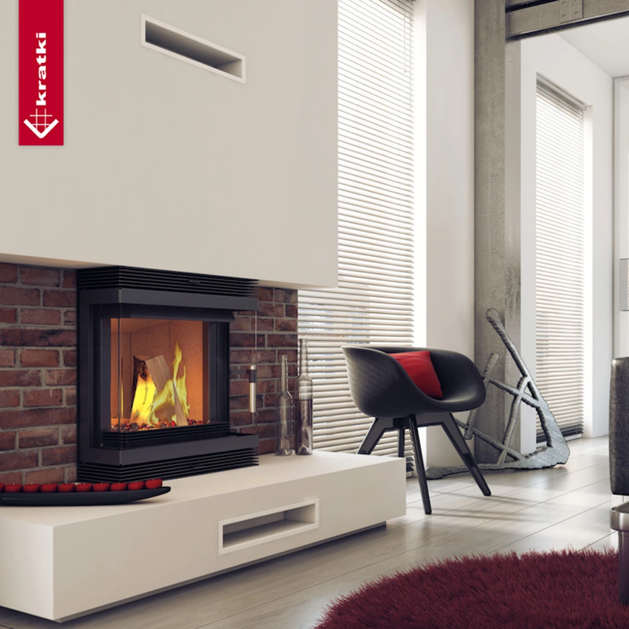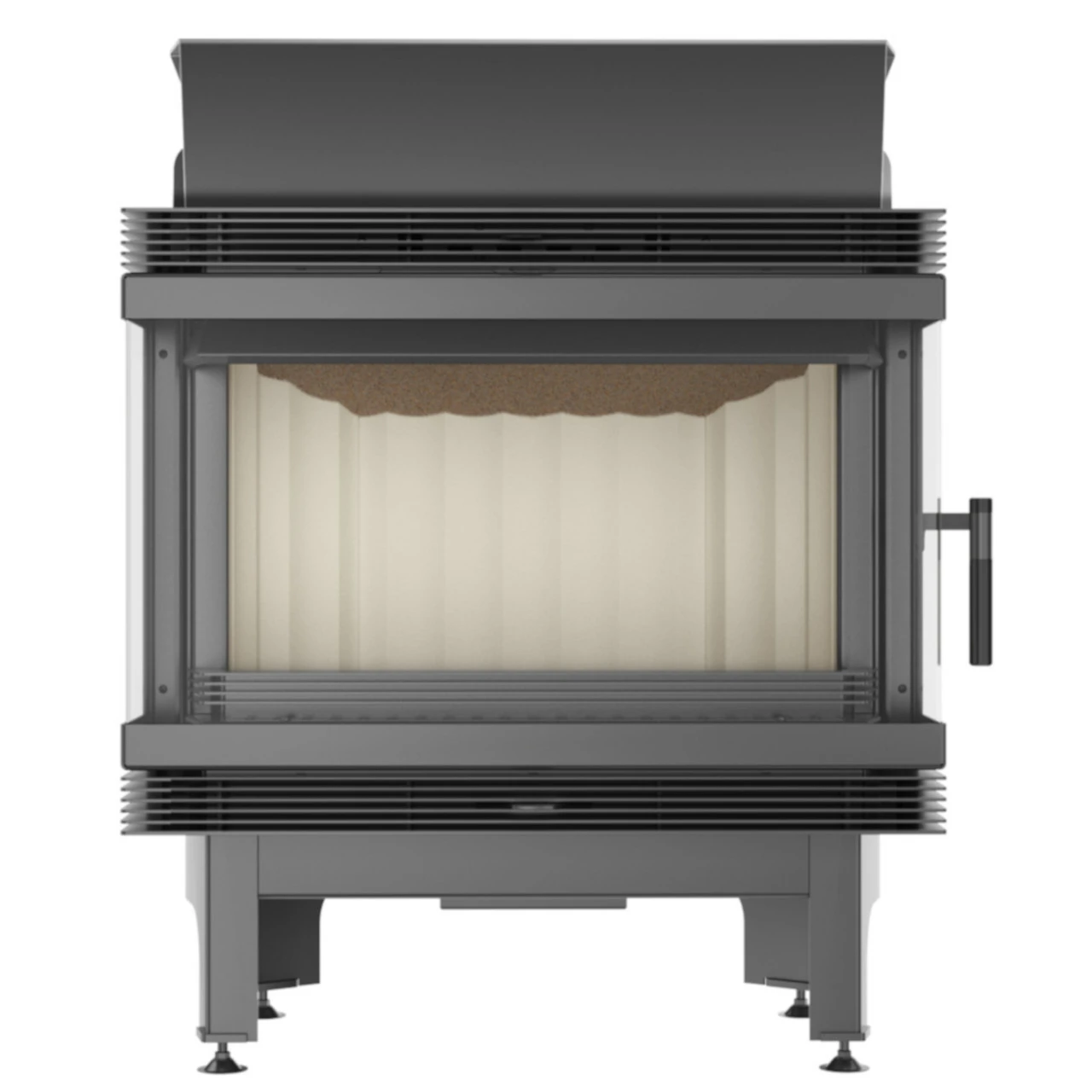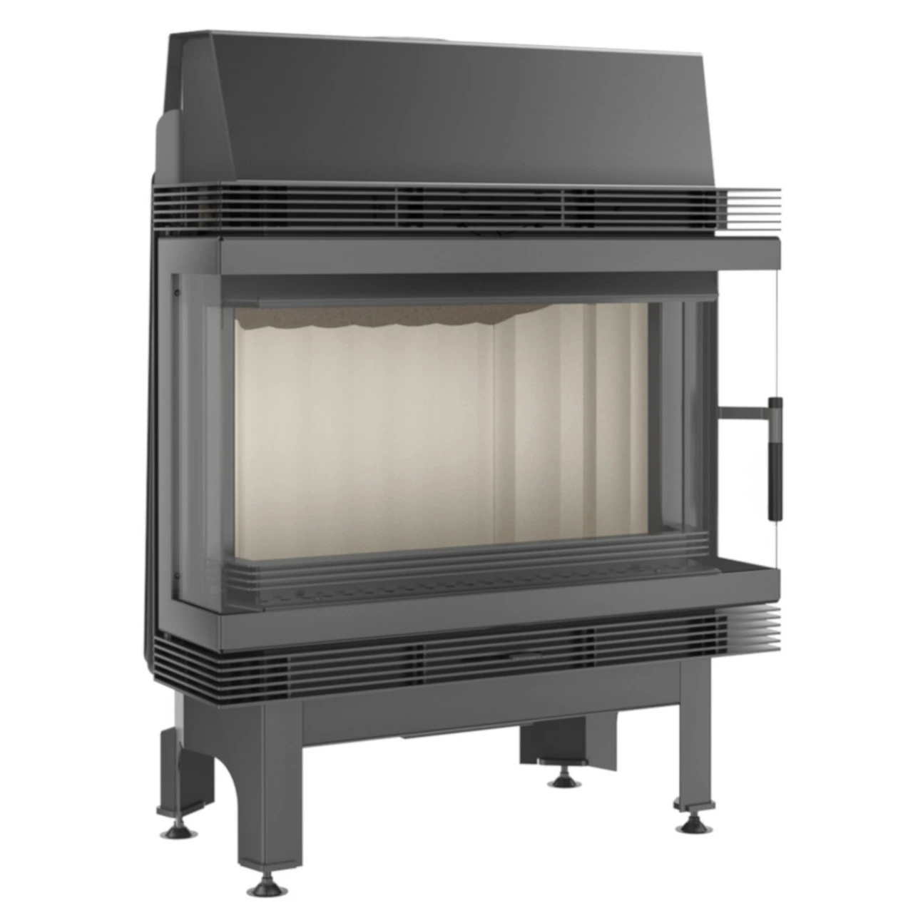 Modell: Kratki Blanka 12 Panorama Warmluft-Eckkamineinsatz mit Schwenktür Dreiseitig Verglast