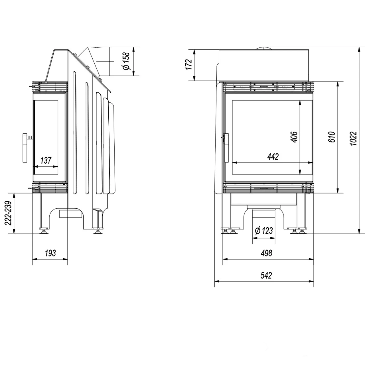 Modell: Kratki Blanka 8 Warmluft-Kamineinsatz mit Rechts verglaster Schwenktür