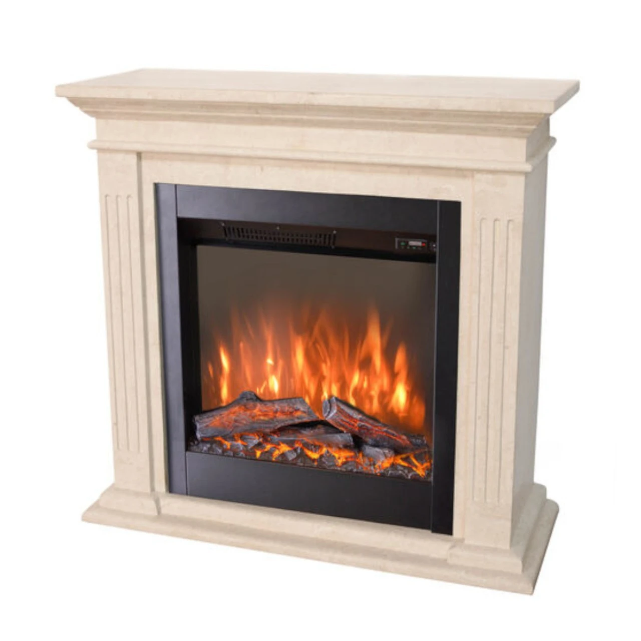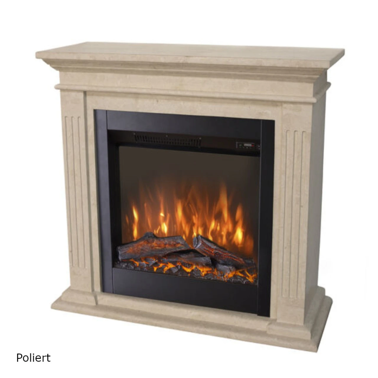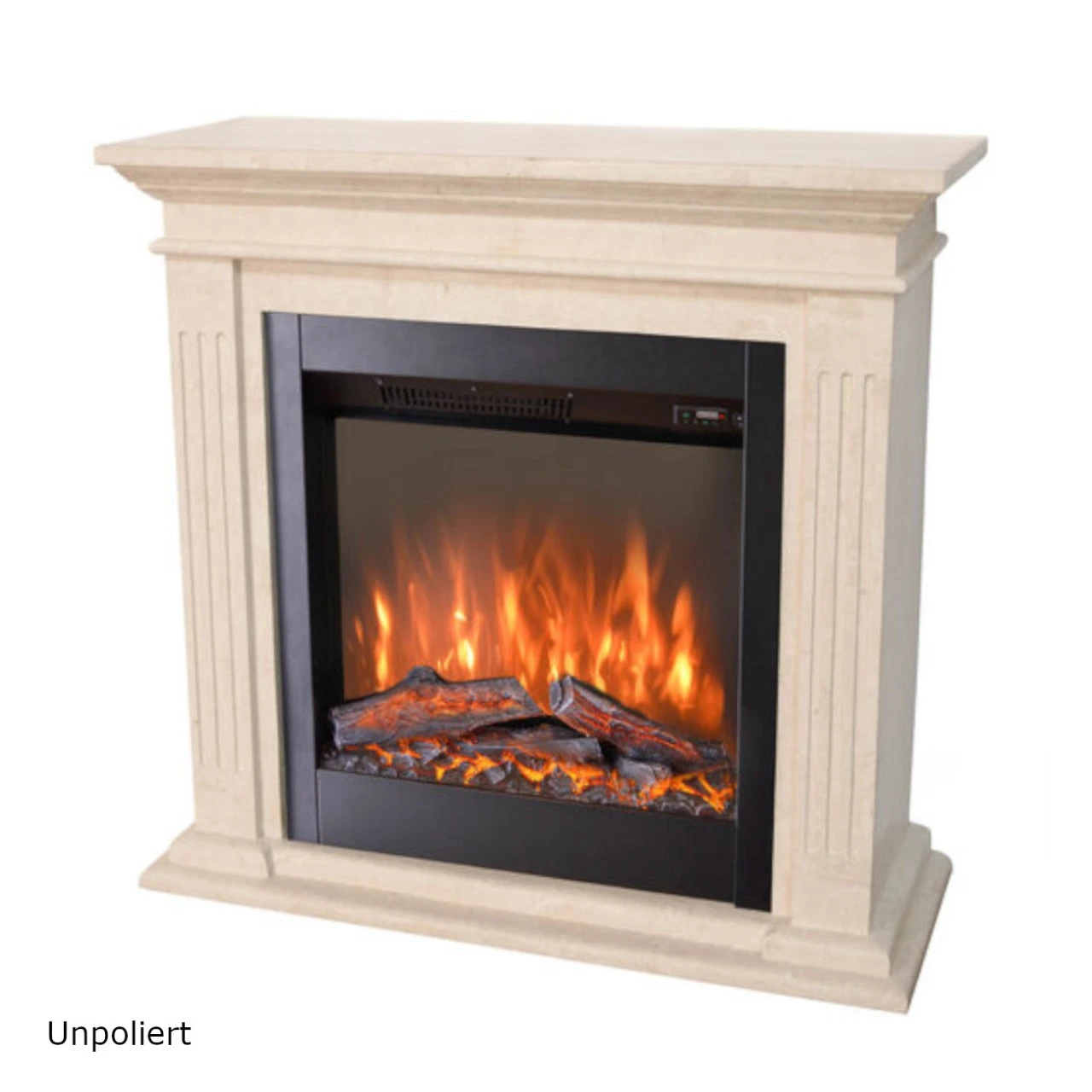 Modell: Cadiz LED Kamin Naturstein Weiß mit Levico 70 LED Kamineinsatz