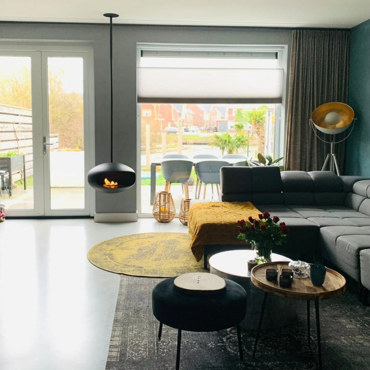 Der luxuriöse und moderne AERIS Biokamin ist ein hängendes Designelement, das die volle Einstellbarkeit eines modernen Hängekamins bietet. Die Hängestange ist in sechs verschiedenen Höhen mit einer Drehung um 360° einstellbar (nur bei Edelstahl Teleskopstange).