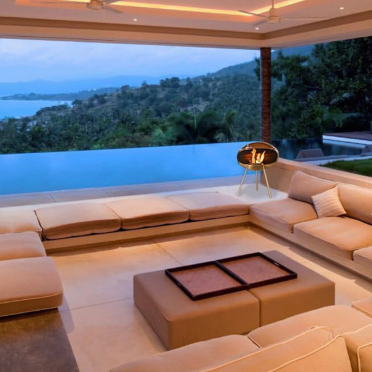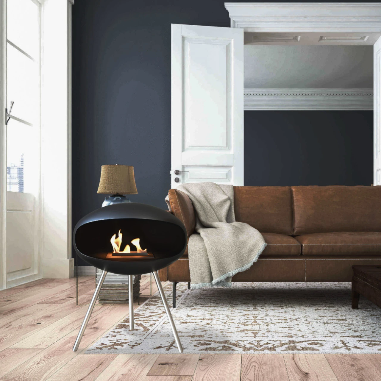 Der luxuriöse und moderne Terra-Kamin ist ein tragbarer freistehender Kamin, der für alle geeignet ist, die nach Vielseitigkeit suchen. Die Terra Ethanolkamine eignen sich hervorragend für Wohnungen und können sowohl drinnen als auch draußen verwendet werden. Ihre Stativbeine passen sich jedem Boden an, auch wenn sie uneben sind.