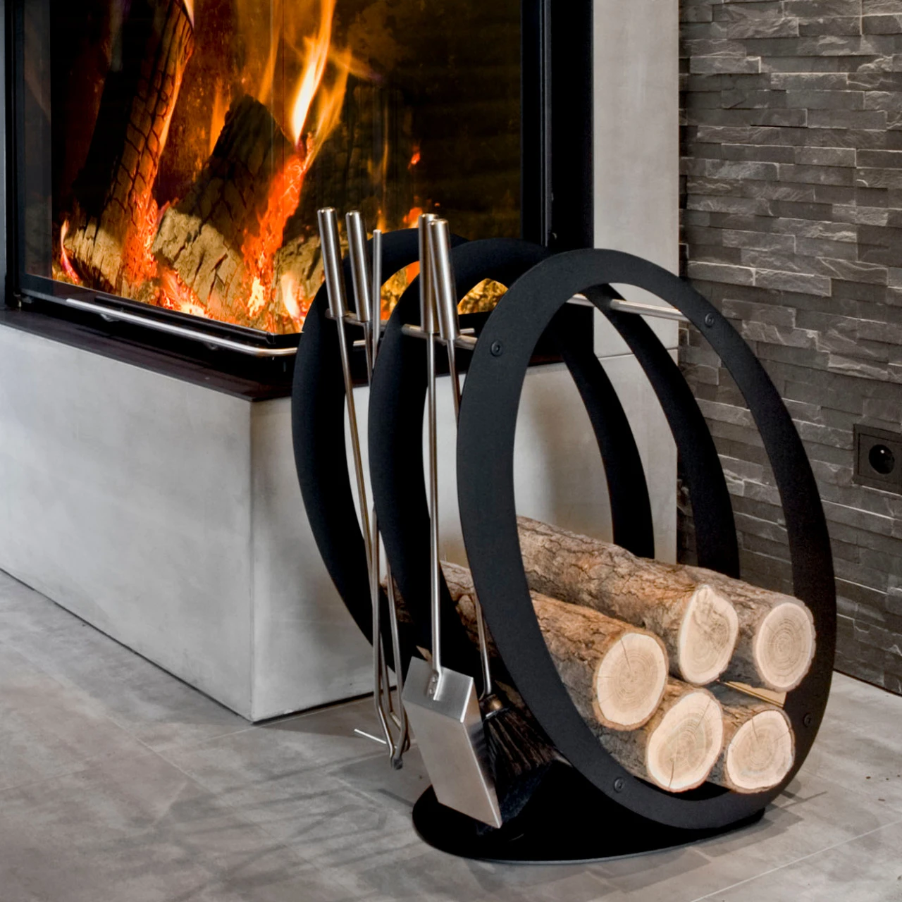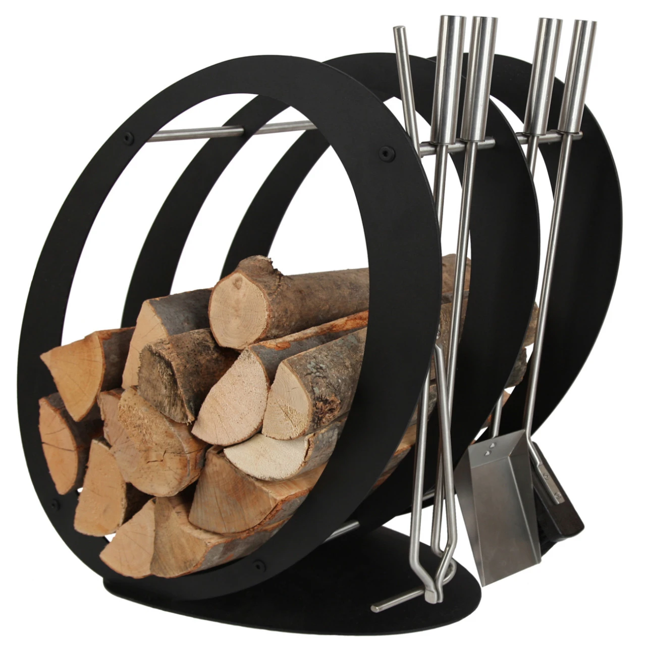 Besteck: Schaufel, Schürhaken, Zange und Besen