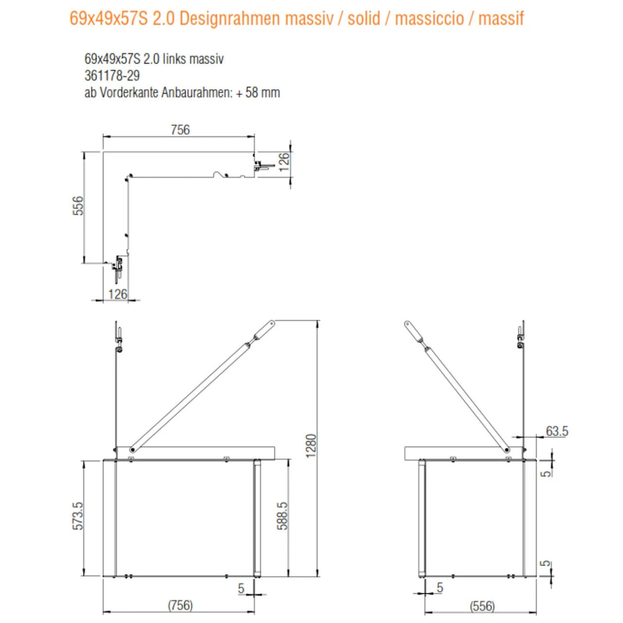 Weitere Maße finden Sie bei den Bildern und im Downloadbereich im Datenblatt (Achtung! Zeichnungen inkl. Konvektionsmantel und Designrahmen)