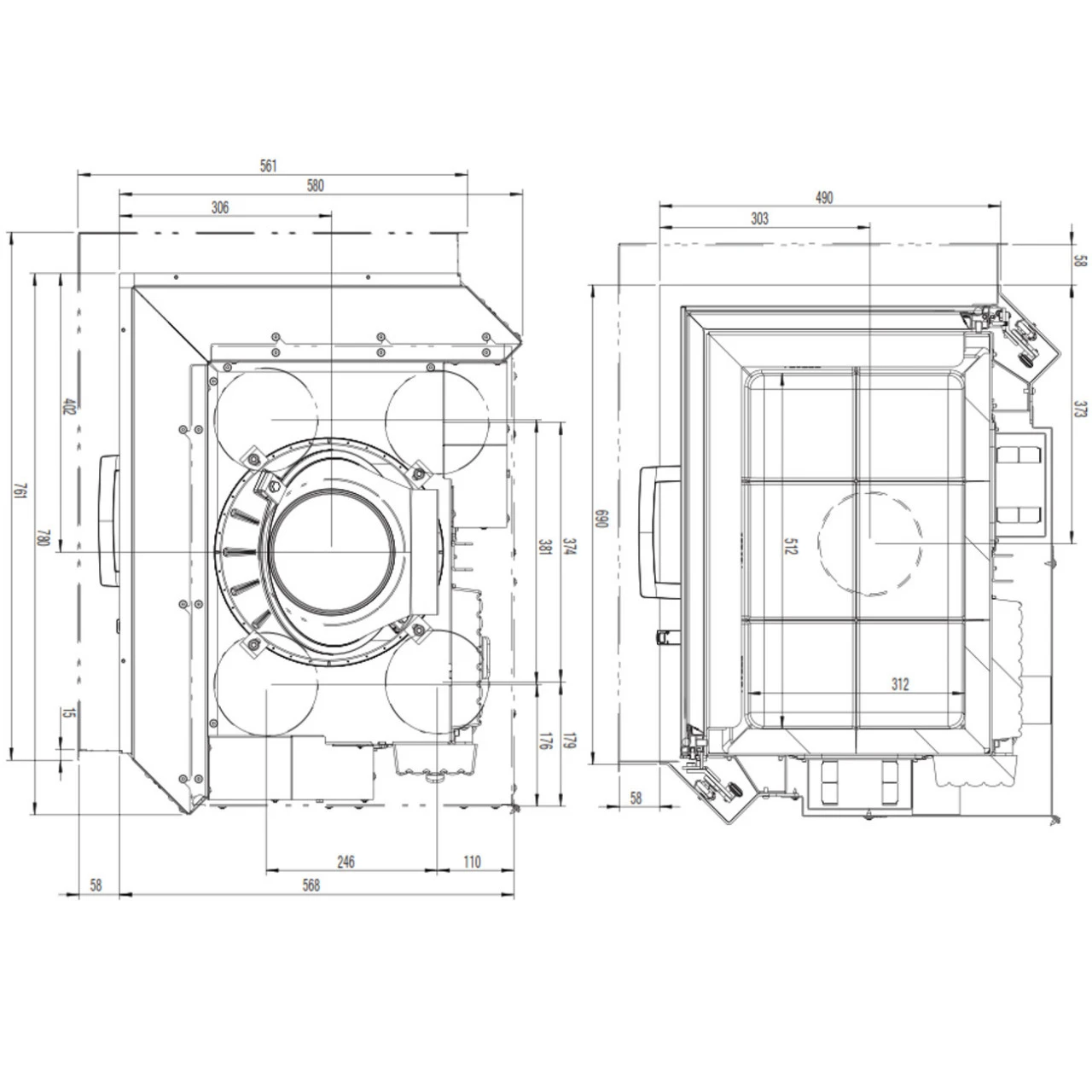 - Download Technische Masszeichnung Austroflamm 69x49x57S