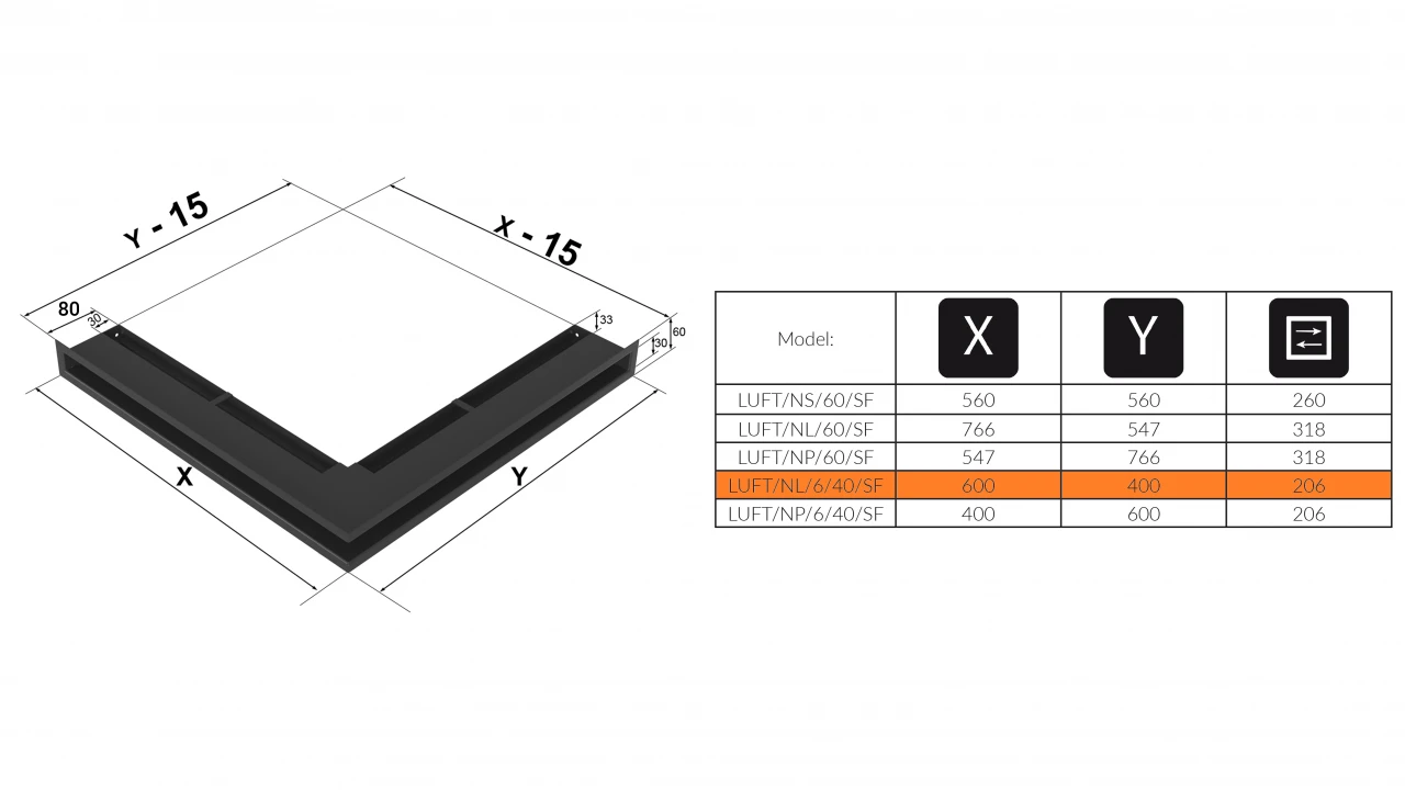 Erhältlich in folgenden Größen (Höhe x Breite/Länge x Tiefe) und Luftdurchlässen (cm²):