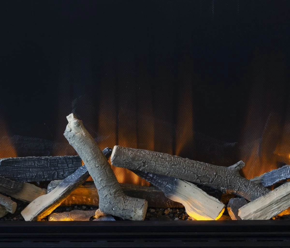 Die Ultra-HD-LED-Technologie verleiht dem Kamin ein tiefes und volles Flammenbild. Durch eine besondere Reflexionstechnologie werden Asche und Glut im Brennerbett täuschend echt nachgebildet. So entsteht, zusammen mit den entspiegelten Glasscheiben ein offener Holzfeuer-Effekt.