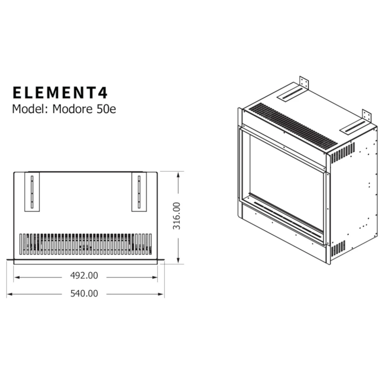 - Download Masszeichnung Elektrischer Kamin 50E Front