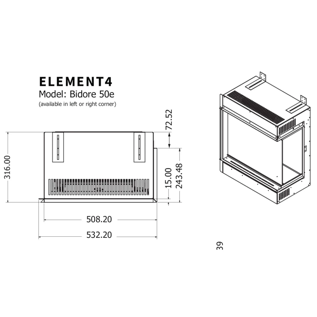 - Download Masszeichnung Elektrischer Kamin 50E 3-Seitig