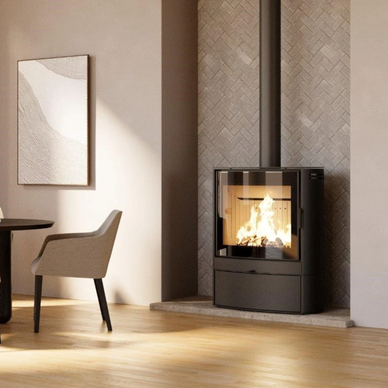 Die einzigartige Brennkammer führt dem Holz aus verschiedenen Bereichen Luft zu. Im Zusammenspiel mit der Dreifachumlenkung der Rauchabgase führt dies zu einer perfekten Verbrennung. Mit dem ergonomischen Regler können Sie die Leistung des Geräts in fünf Stufen steuern.