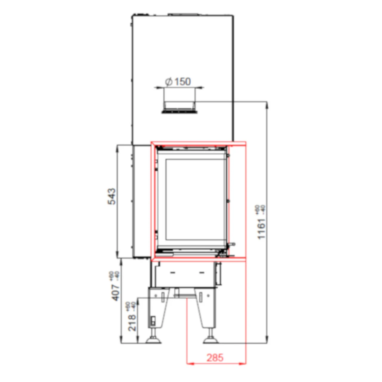 - Besonderheiten Kamin: Anschluss für Externe Luftzufuhr/ Frischluftzufuhr; Höhenverstellbare Füße;