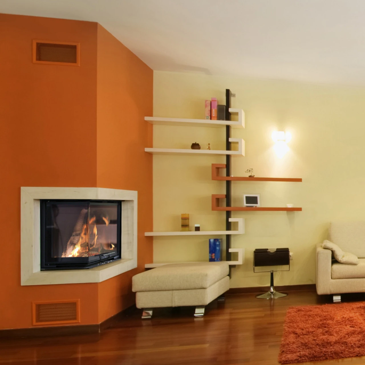 - Kamin-Scheibenform: Eckverglaung – Links;