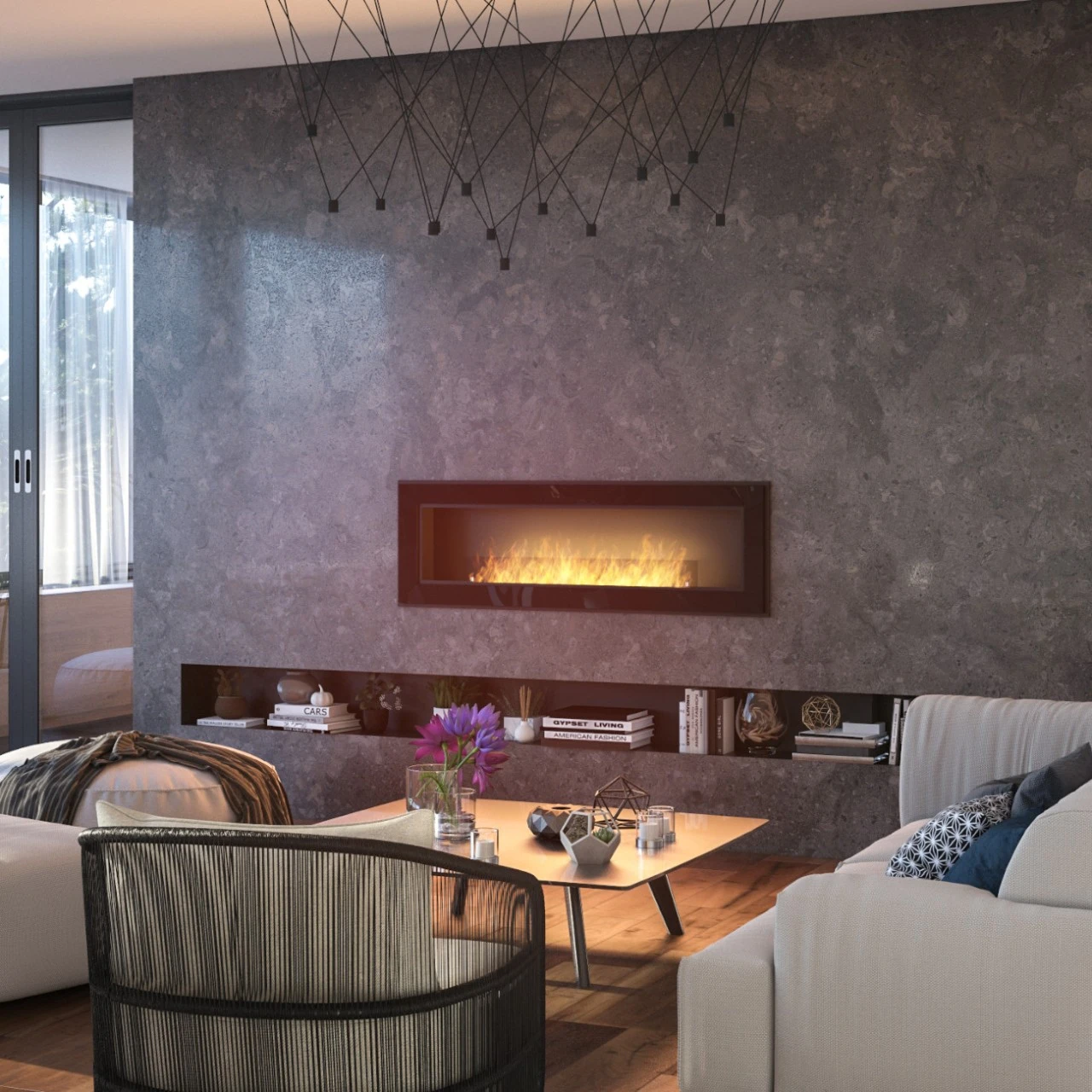 Der Ethanolkamin von SIMPLE fire, FRAME 1500, eignet sich bestens zum Einbau in einer Nische oder zum befestigen an einer Wand. Die Konstruktion des Ethanolkamins gewährleistet eine einfache Montage und eine effektive Ausarbeitung, ohne dass der Rand der Aussparung in der Wand ideal bearbeitet werden muss. Der Ethanolkamin ist mit einer Glasscheibe erhältlich, welche die Sicherheit des Ethanolkamins noch einmal erhöht. Der FRAME 1500 ist erhältlich in 3 unterschiedlichen Farben – Schwarz, Weiß oder Inox (Edelstahl) – mit Schutzglas.