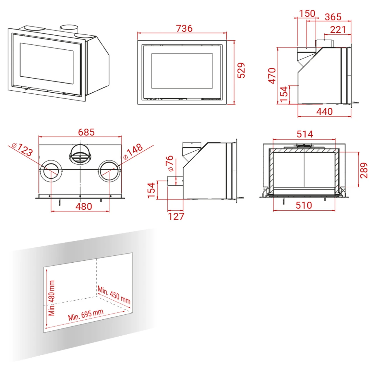 H470 Einbau-Kaminkassette 6kW