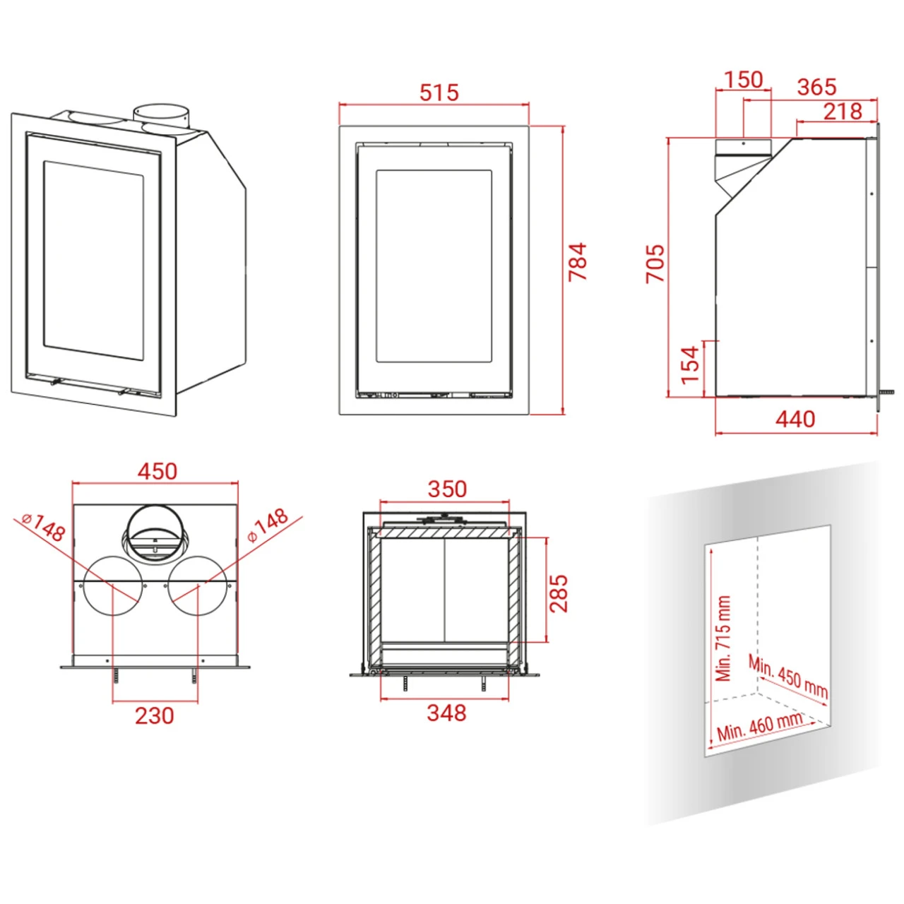 Modell: Lotus H700 Einbau-Kaminkassette 6kW opt ext Luftzufuhr und Konvektion