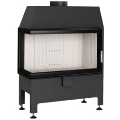Der Feuerraum ist mit einer 3 cm starken Keramik-Auskleidung in weiß ausgestattet. Der Kamineinsatz verfügt über eine Tür mit einem ergonomischen und belüfteten Öffnungsgriff aus Edelstahl und ist für eine langfristige, störungsfreie und ökonomische Nutzung gebaut.