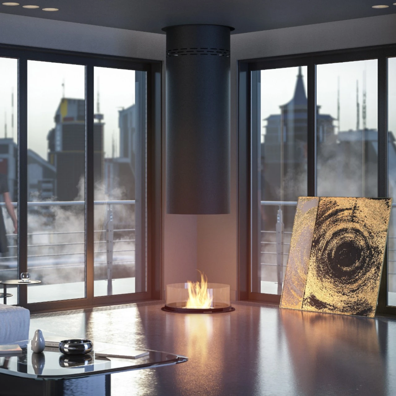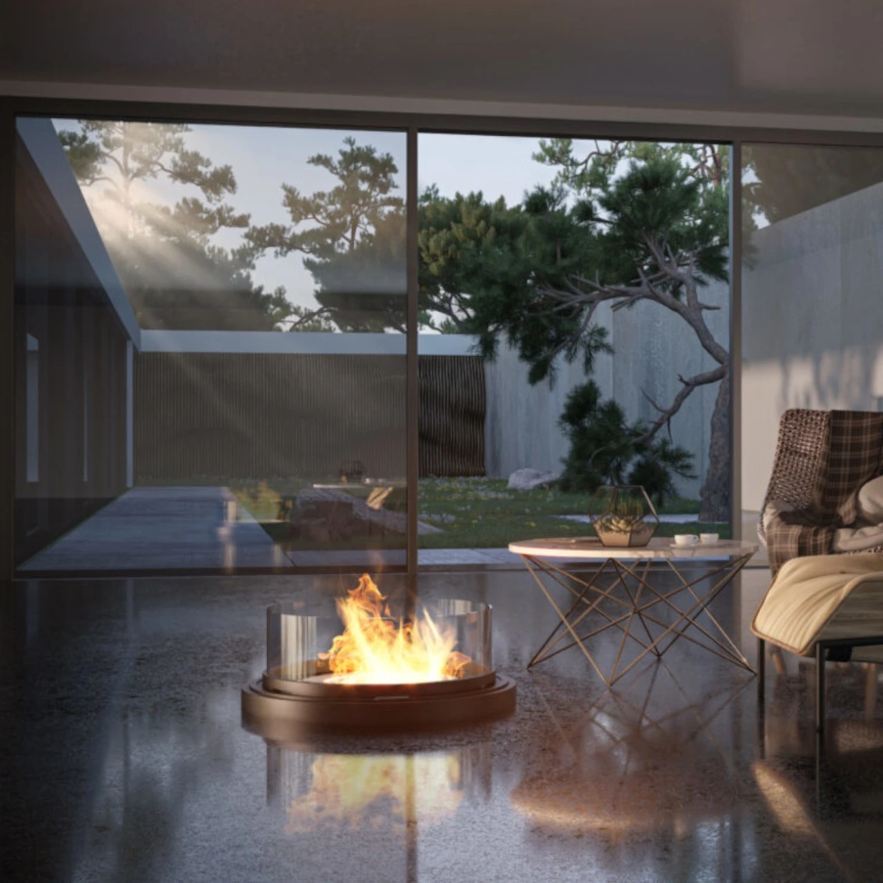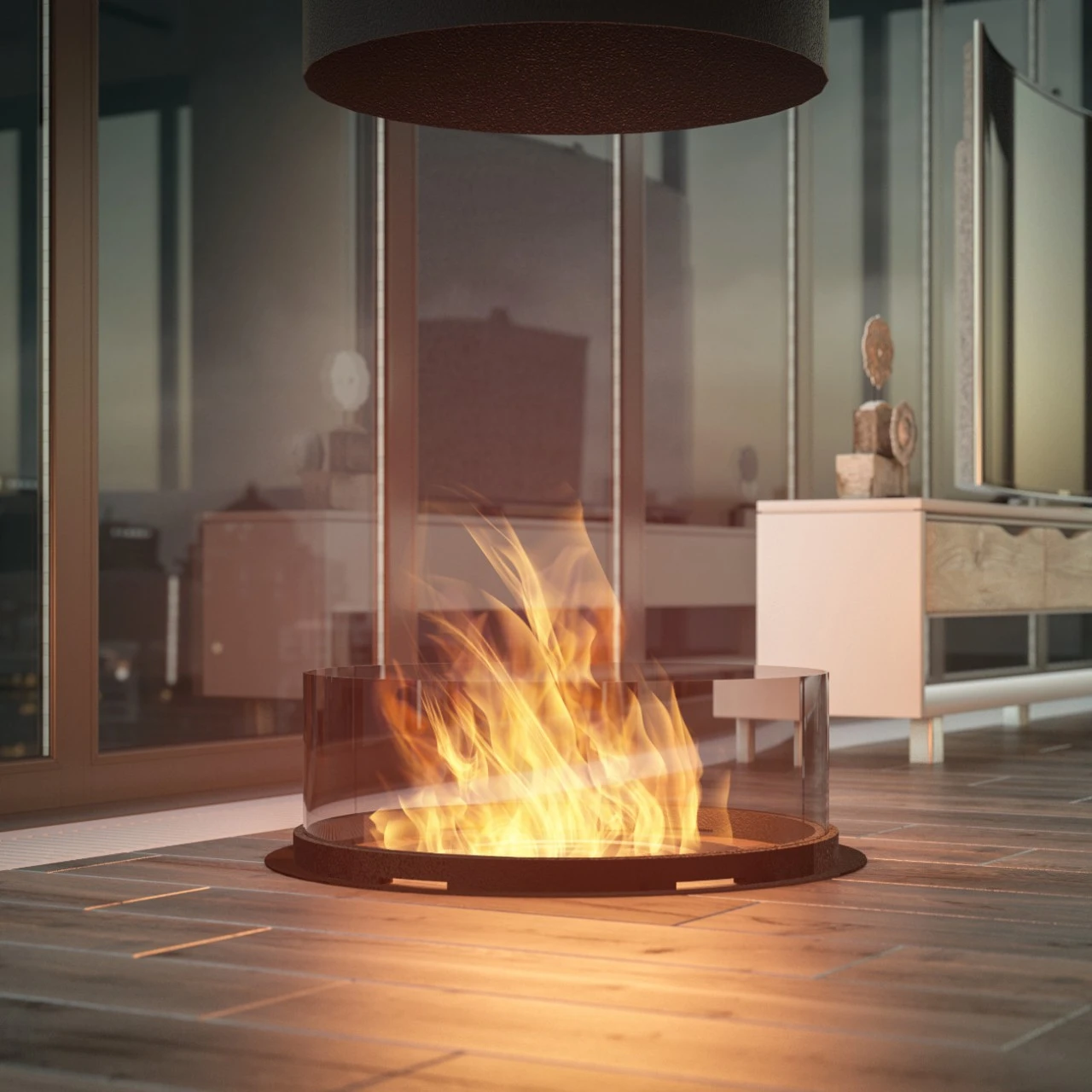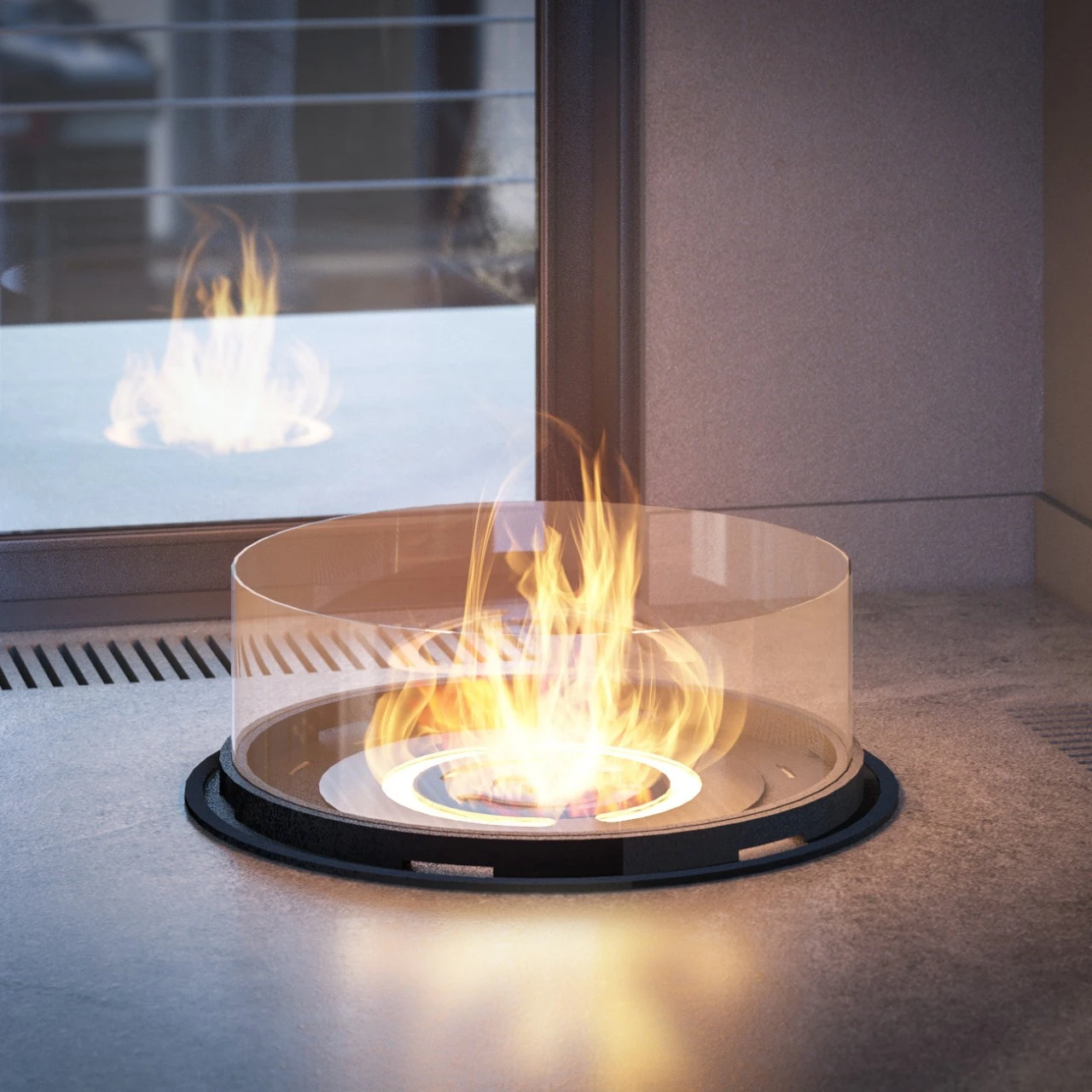 Der INROUND ist ein Biokamin mit einer beispiellosen Form. Durch die runde Form kann der Kamin wie ein Lagerfeuer von allen Seiten bewundert werden. Der Sockel kann sowohl direkt im Boden als auch in einem Gehäuse, z.B. Möbel, montiert werden. Das im Set enthaltene Rohr ahmt das Motiv des Rauchgasaustritts nach, der bei der Verbrennung von Biobrennstoffen NICHT entsteht, so dass der Kamin an jedem beliebigen Ort eingesetzt werden kann. Speziell für dieses Modell wurde ein schwarzer Brenner mit Overlays angepasst, die die Größe der Flamme regulieren und das Löschen ermöglichen.