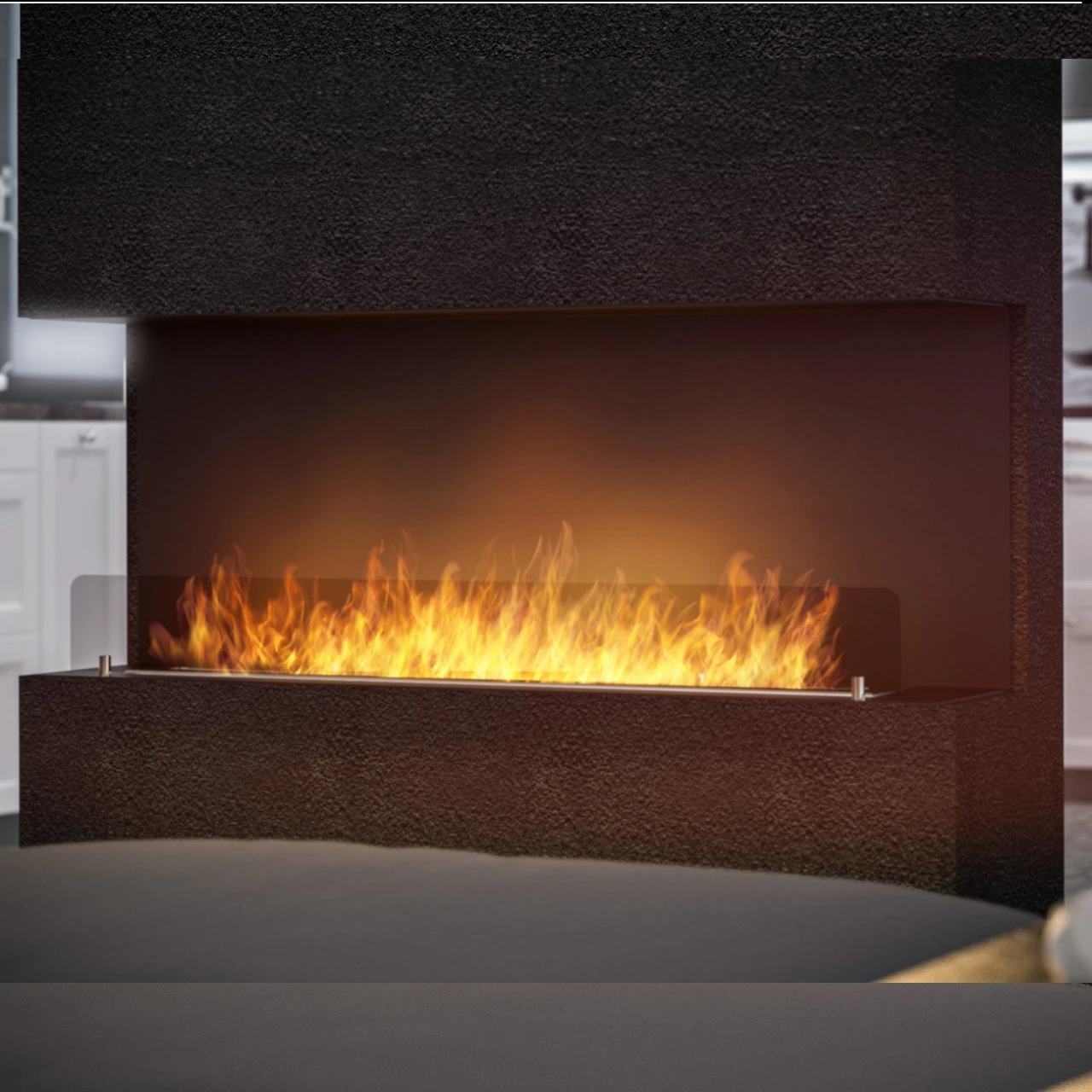 Das Modell INSIDE C1200 ist ein großer Panorama Ethanolkamin, der in einer vorbereiteten Nische montiert werden kann. Dank der Verwendung von speziell verstärktem Kesselstahl konnte diese Form mit nur einer Stahlschicht erzielt werden. Durch die Konstruktion des Kamins können Sie das Feuer sogar von drei Seiten geniessen.