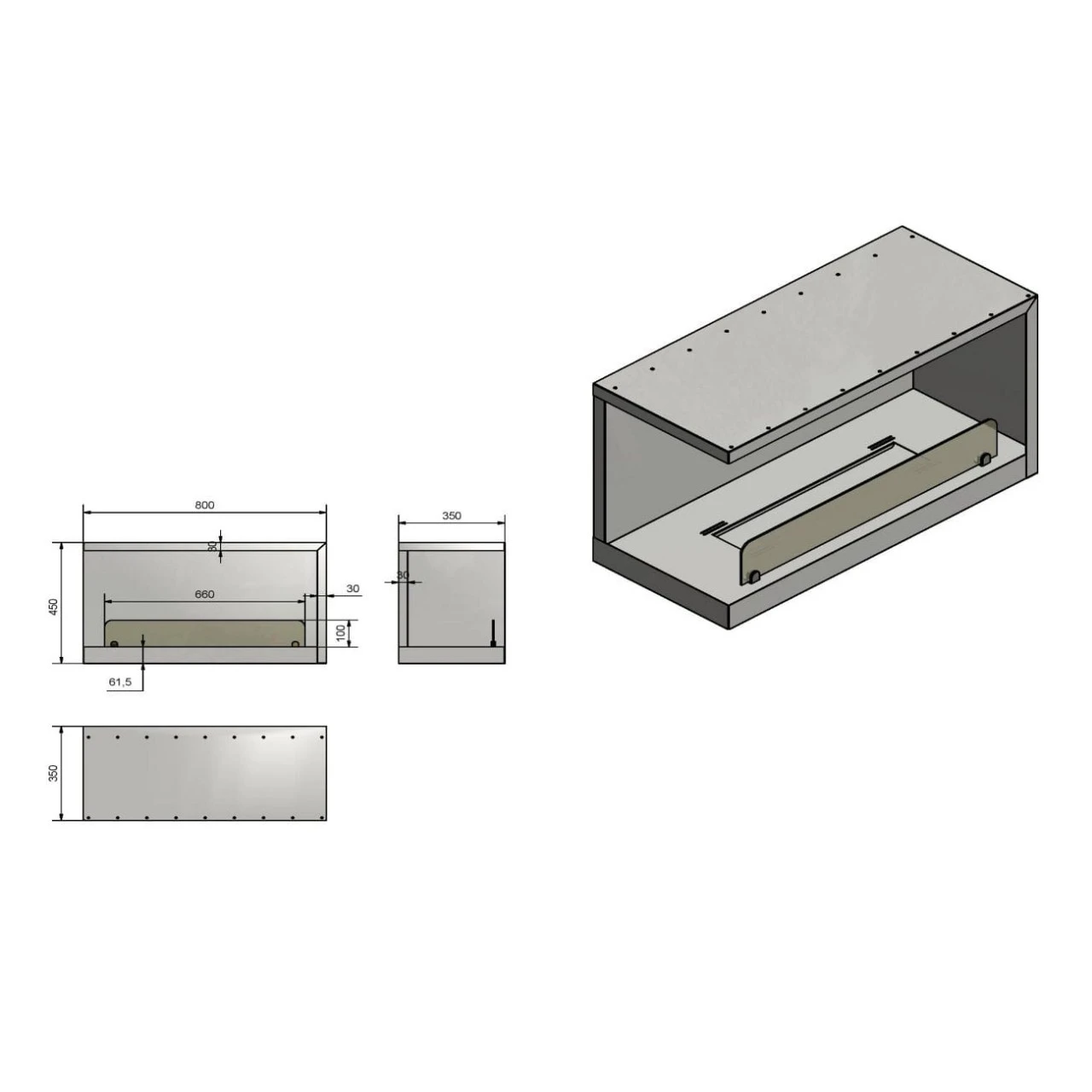 Modell: InFire INSIDE L800 Ethanolkamin Einbaukassette Ecke Links