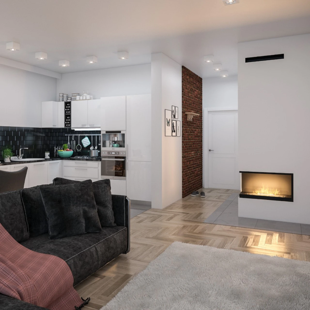 Das Eckmodell L800, mit offener linker Seite, ist bestens zum Einbau in einer Nische geeignet. Die Konstruktion des Ethanolkamins gewährleistet eine einfache Montage und eine effektive Ausarbeitung, ohne dass der Rand der Aussparung in der Wand ideal bearbeitet werden muss. Der Ethanolkamin ist mit einem Rahmen erhältich, der über die Umrisse des Kamins hinausragt und die Wand überlappt (je nach Variante). Die leicht getönte Scheibe stabilisiert das Feuer und verleiht ein einzigartiges Aussehen.