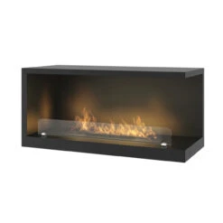 Das Eckmodell P800, mit offener rechter Seite, ist bestens zum Einbau in einer Nische geeignet. Die Konstruktion des Ethanolkamins gewährleistet eine einfache Montage und eine effektive Ausarbeitung, ohne dass der Rand der Aussparung in der Wand ideal bearbeitet werden muss. Der Ethanolkamin ist mit einem Rahmen erhältich, der über die Umrisse des Kamins hinausragt und die Wand überlappt (je nach Variante). Die leicht getönte Scheibe stabilisiert das Feuer und verleiht ein einzigartiges Aussehen.