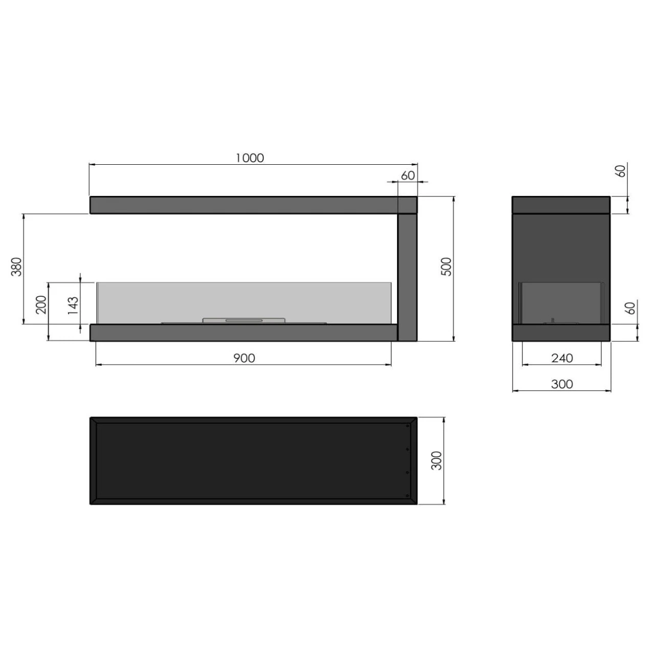 Modell: InFire INSIDE U1000 Panorama Ethanolkamin Einbaukassette