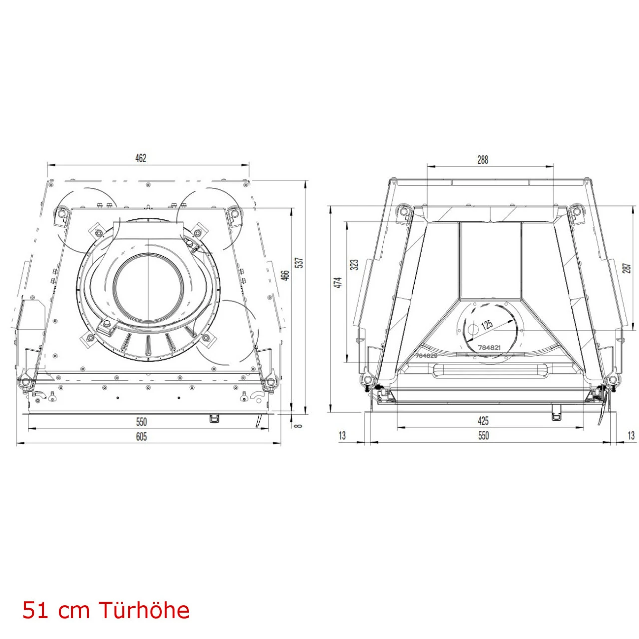 Weitere Maße finden Sie bei den Bildern und im Downloadbereich im Datenblatt (Achtung! Zeichnungen inkl. Konvektionsmantel und Designrahmen)