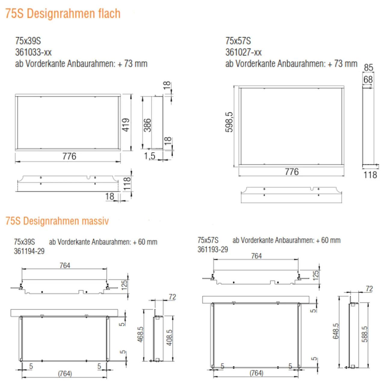 Designrahmen (Einbaurahmen) in Gussgrau (flach oder massiv – siehe Bilder)