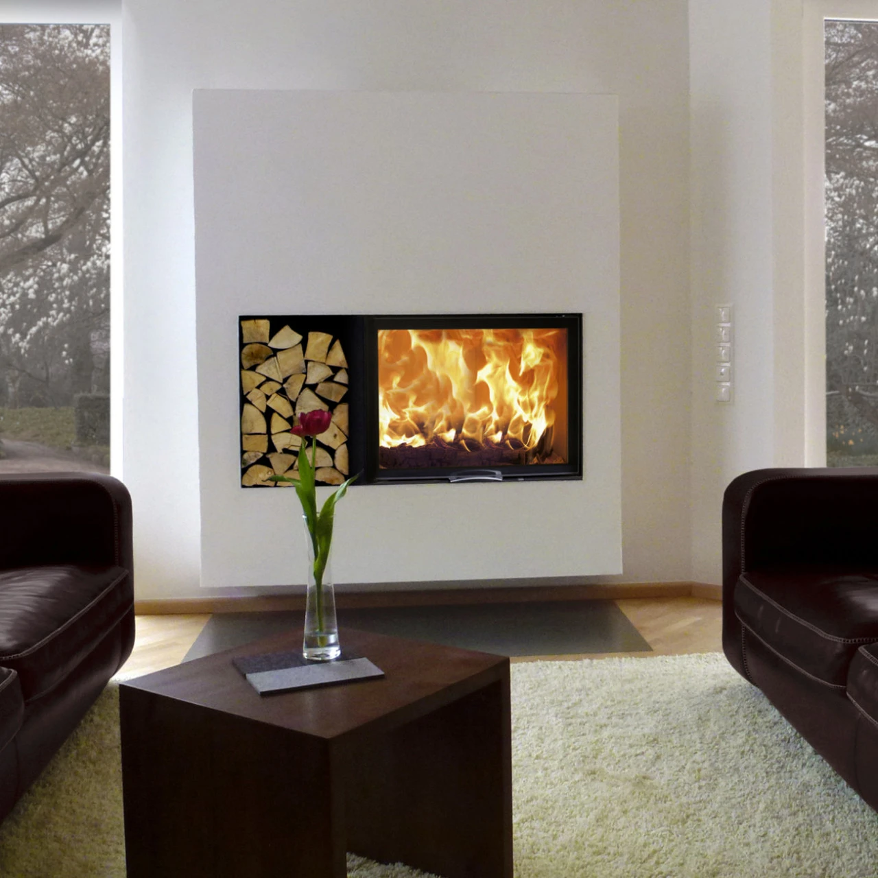 Rostlose Verbrennung: die Holzglut liegt direkt auf dem Boden des Brennraumes. Durch die Innovative Verbrennungsluft wird die Glut hocherhitzt und führt so zu einer fast vollständigen Holzverbrennung. Somit entfällt das Lästige entleeren des Aschekastens