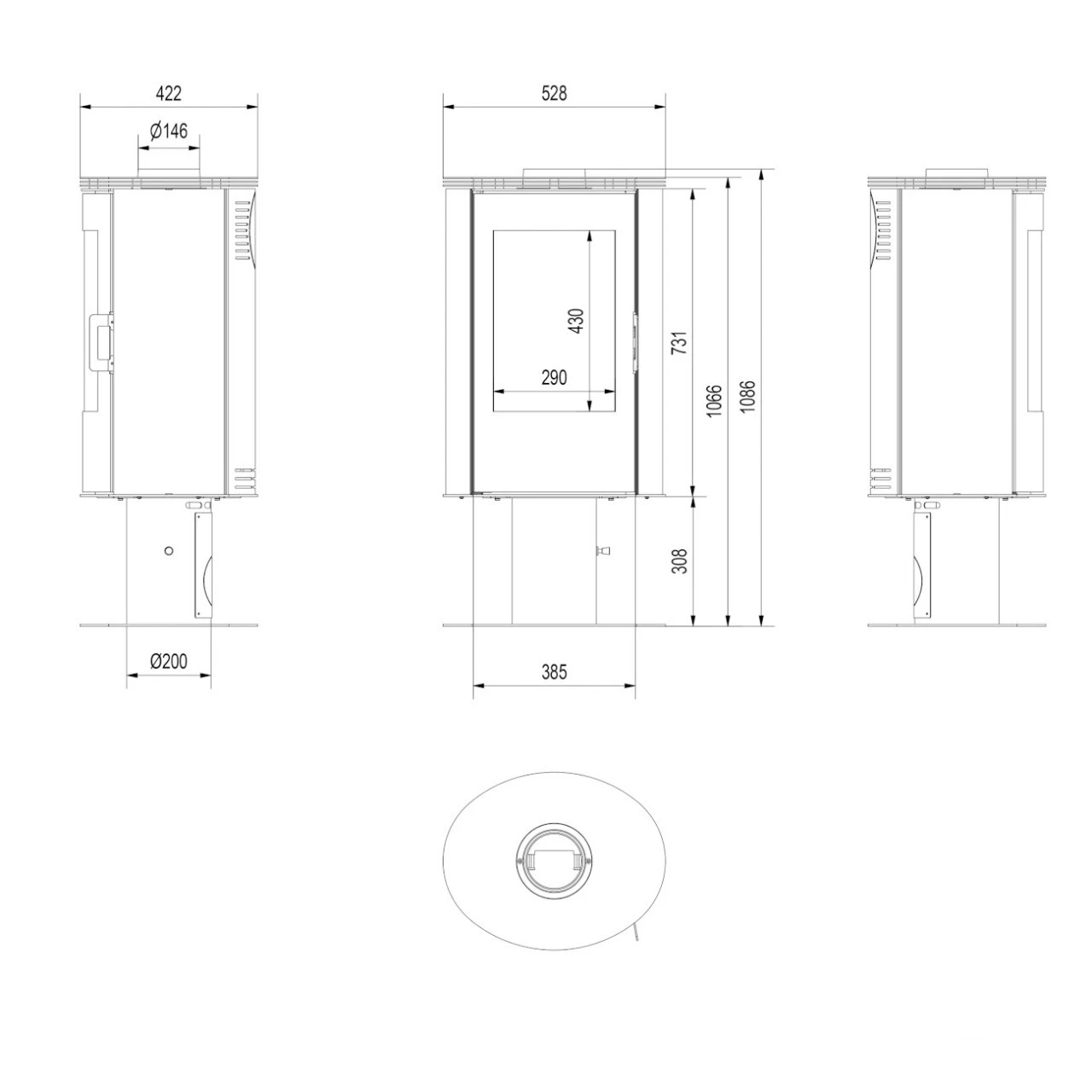 Ein schöner Kaminofen aus robusten Material hergestellt. Der Kaminofen ist aus Stahl gefertigt und für den Betrieb bei höheren Temperaturen geeignet. Die Tür ist mit hitzebeständigem Keramikglas bis zu 800°C angefertigt.