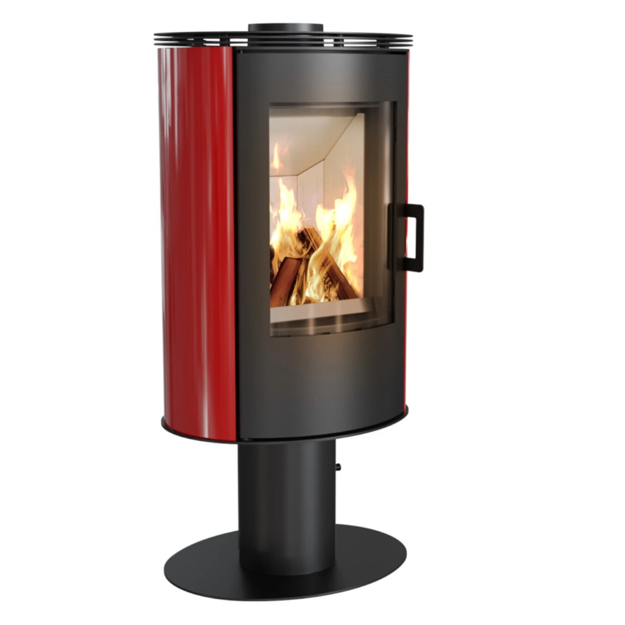- Kaminofen mit Trompetenfuß. Der Kaminkorpus (oberer Teil) ist um 360° drehbar.