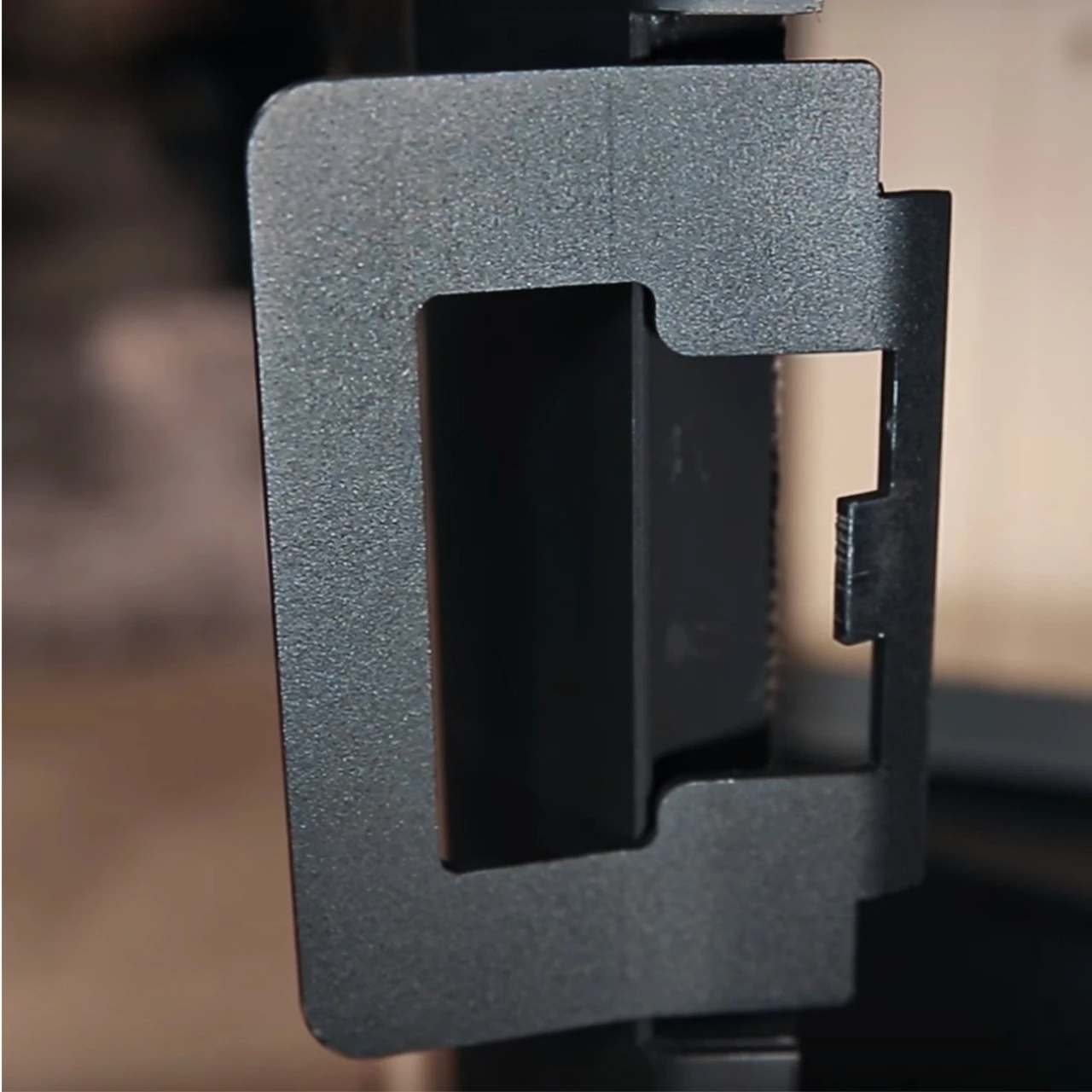 - Die Feuerraumtür ist ausgestattet mit einem modernen Schiebetürgriff