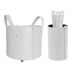 - Innen und außen aus zweilagigem regeneriertem Leder. (Kaminbesteckhalter und Holzkorb)