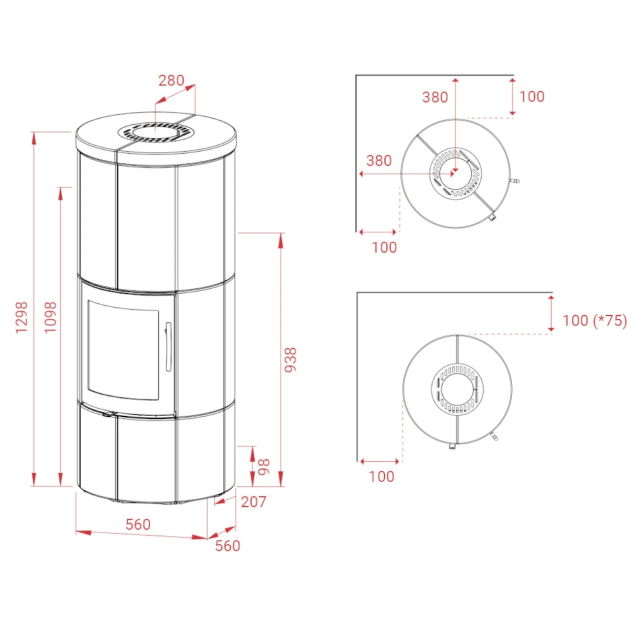 - Abstand von Mitte des Rauchstutzens bis zur Hinterkante des Ofens: 28,0 cm;