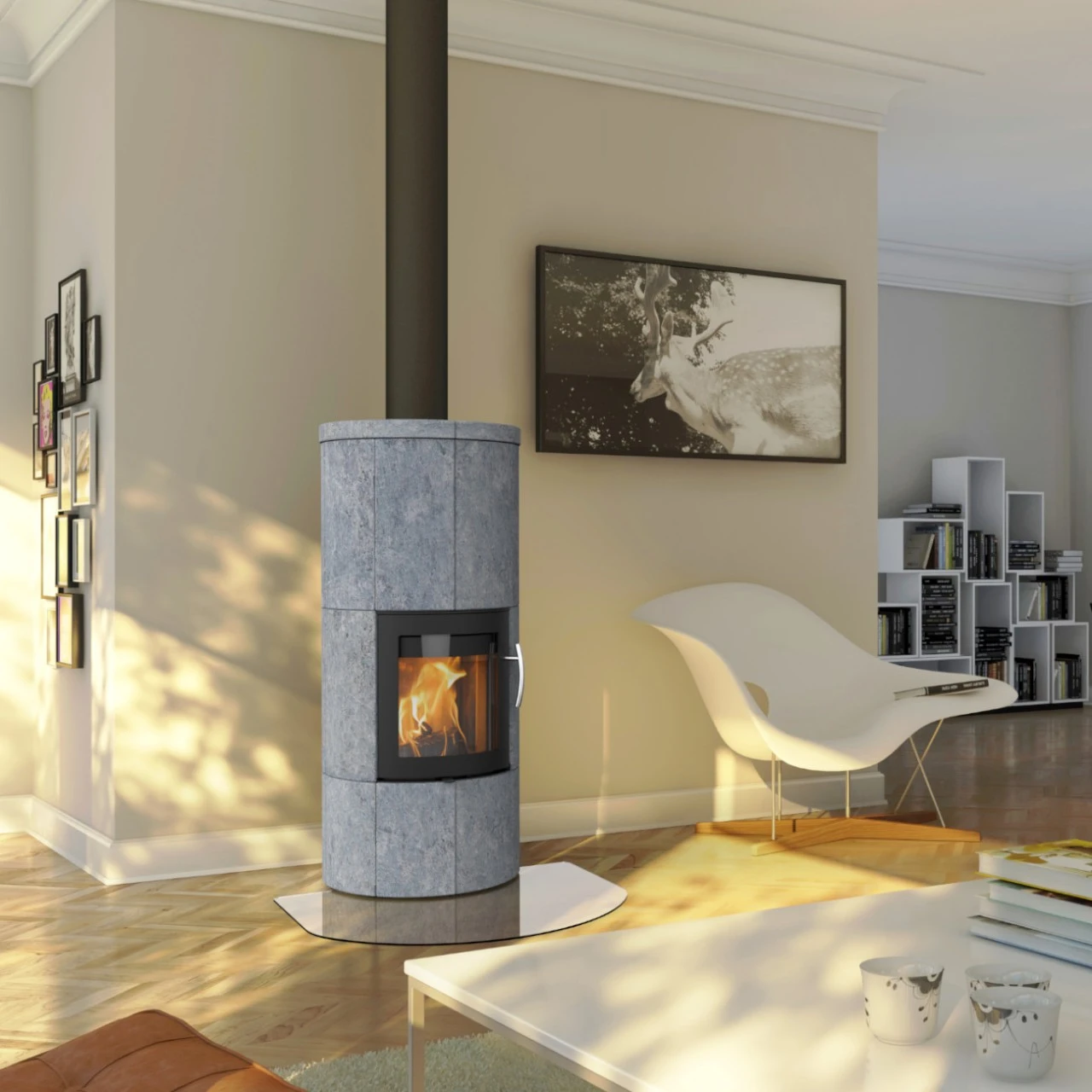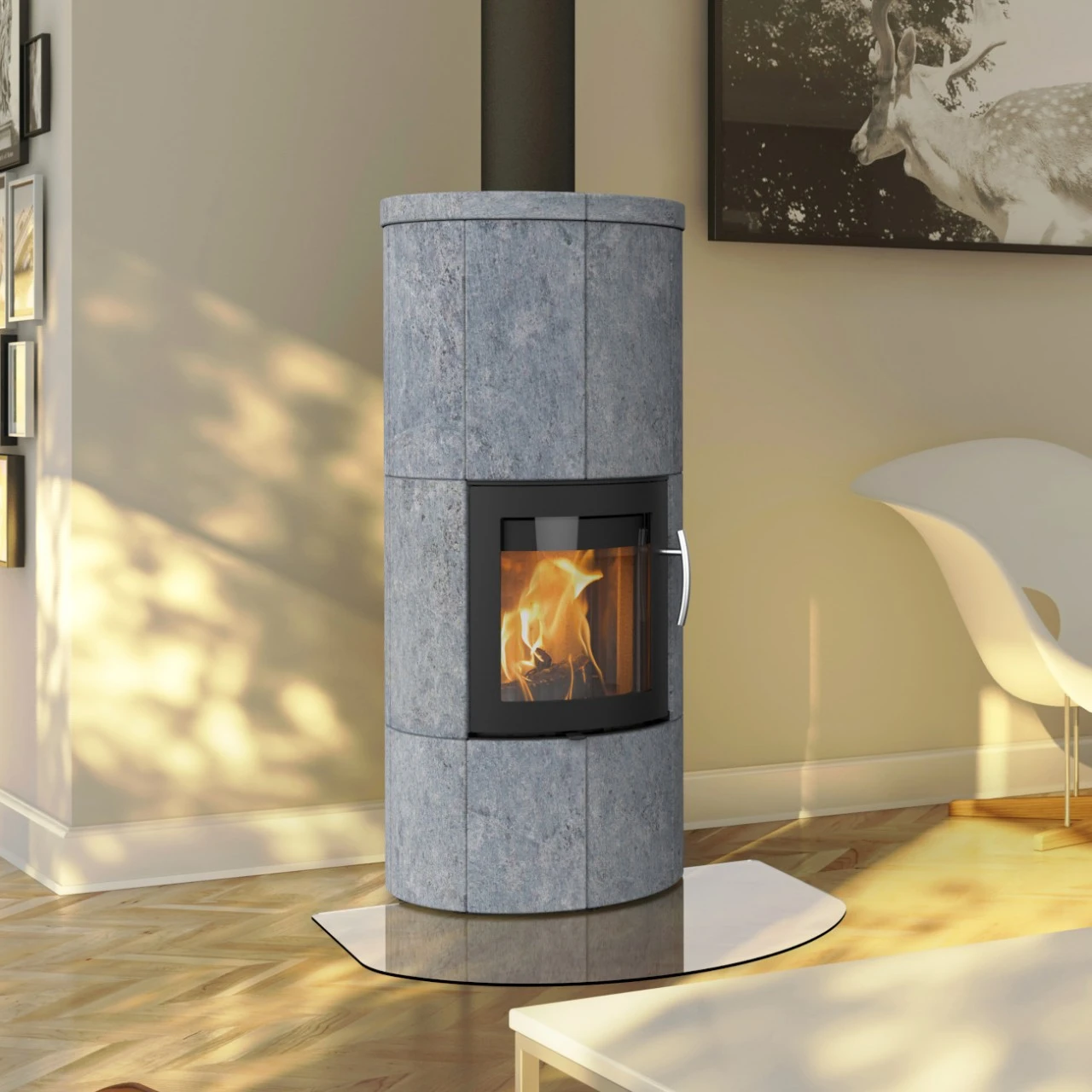 Speckstein ist ein Mineral, das in Ländern wie Finnland, Norwegen und Brasilien vorkommt. Charakteristisch für dieses Naturmaterial ist seine weiche, lebendige Oberfläche. Speckstein wird häufig für die sogenannten Speicheröfen oder als Seitenverkleidung bei herkömmlichen Kaminöfen verwendet, da er über eine hervorragende Fähigkeit zur Wärmespeicherung verfügt. Er ist wie kein anderes Material in der Lage, Wärme viele Stunden lang zu speichern und langsam abzugeben, nachdem das Feuer bereits erloschen ist. Speckstein ist ein von der Natur geschaffenes Material, dessen natürliche Variation in Struktur und Oberflächenbeschaffenheit jeden Stein und Ofen einzigartig macht.