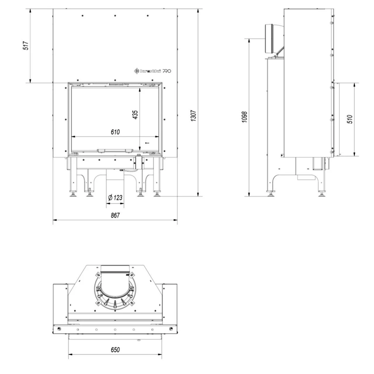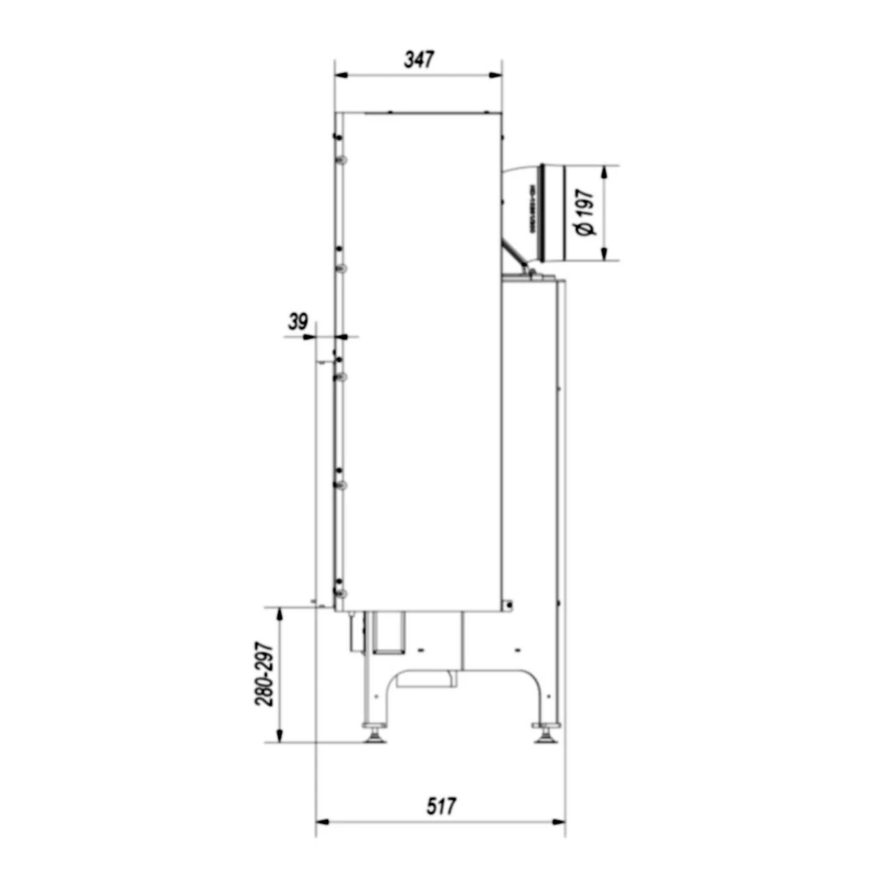 Durchmesser Rauchrohr: 200 mm (197 mm)