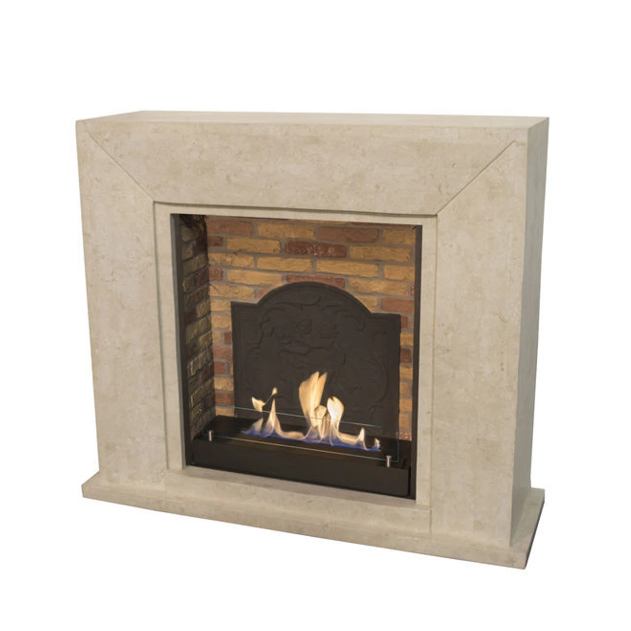 Nero Bioethanol Kamin Naturstein Weiß Mit Steindekor Und Medaillon