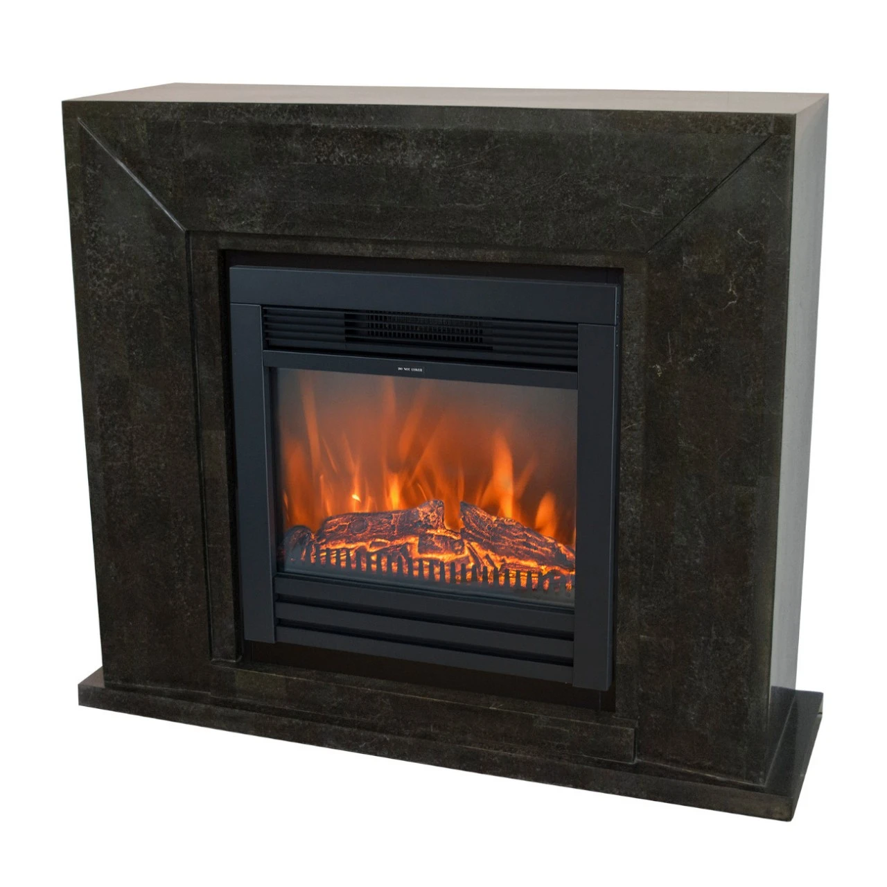 Modell: Nero Naturstein Schwarz Kamin mit Lucius LED Kamineinsatz