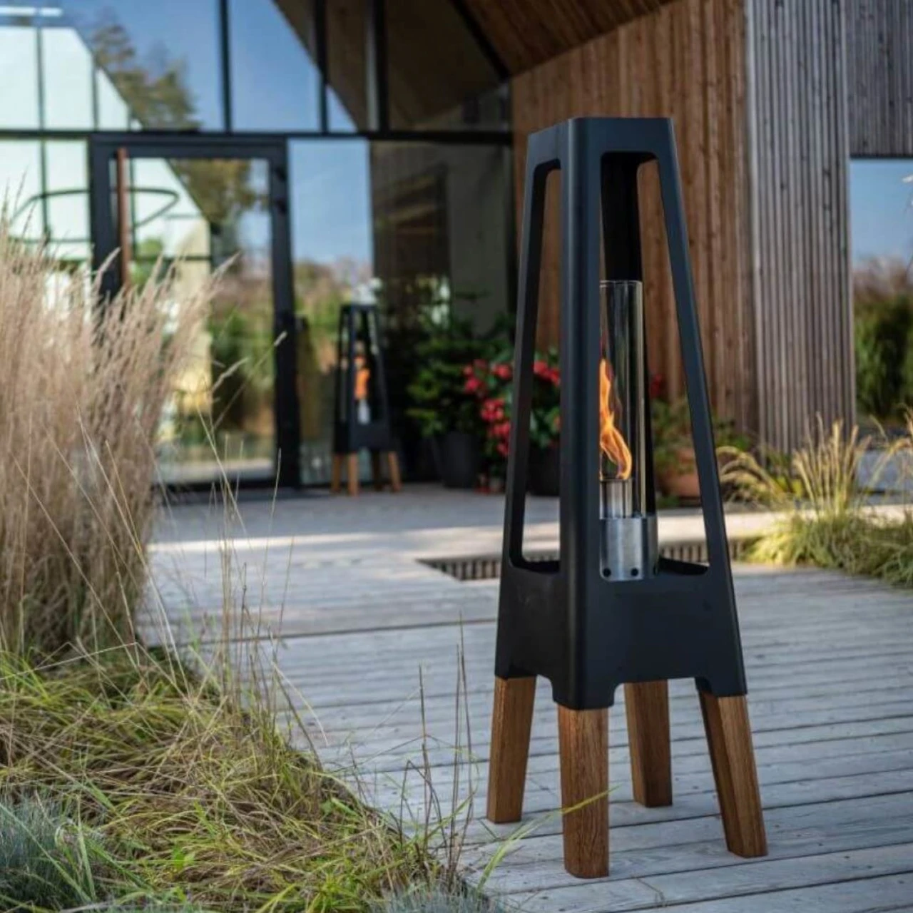 Mehr Feuer und stimmungsvolle Atmosphäre ohne schlechten Geruch. Ökologische Biobrennstoffl ampen erhellen wunderschön die Dunkelheit des Gartens oder der Terrasse. Das minimalistische Design wird durch das Stahlgehäuse betont. Die Lampe ist aus Edelstahl gefertigt, schwarz gefärbt, oder aus Cortenstahl und exotischem Holz, aus dem die Füße gemacht sind. Eine funktionellere Alternative zu Kerzen – mehr stimmungsvolles Licht in Ihrer Umgebung.