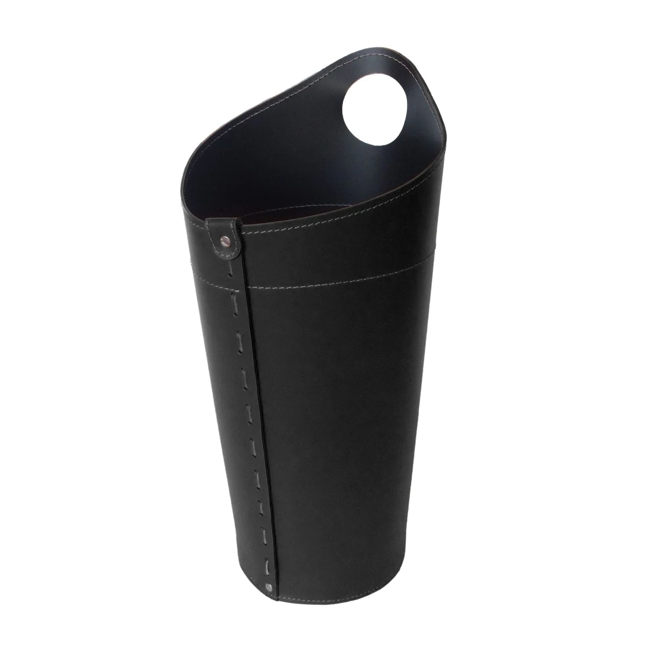 Material: Stahl, Innen und Aussen bezogen mit regeneriertem Leder, handgenäht.