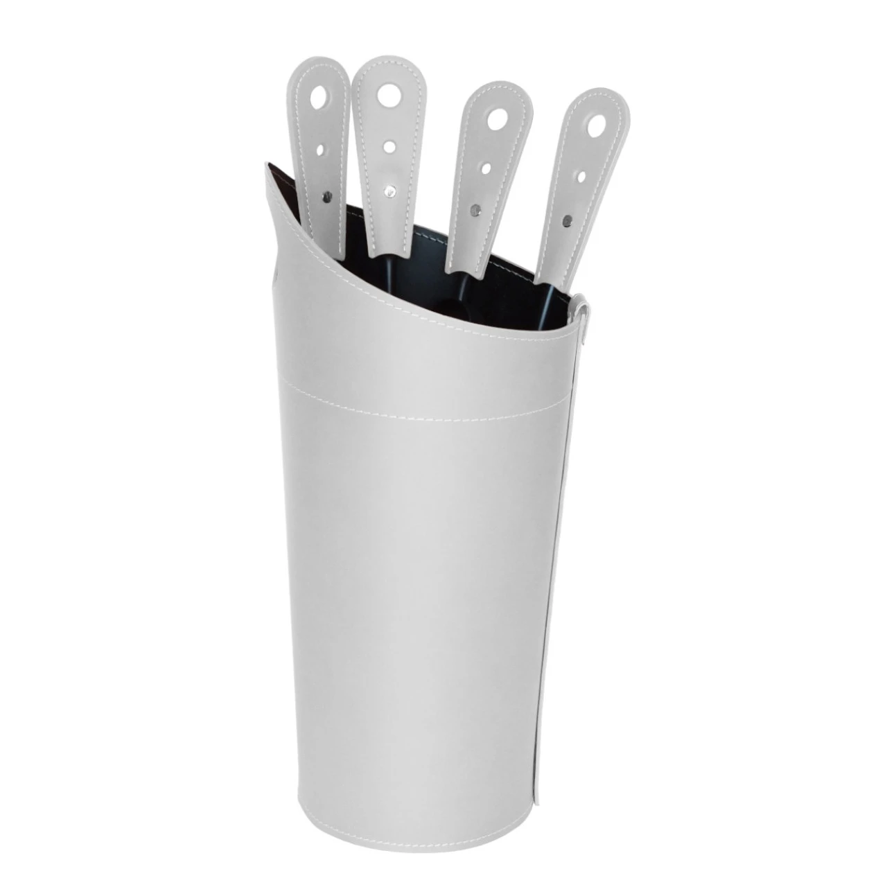 Set bestehend aus Kaminbesteckhalter aus Leder mod. „Nidac“ und 4-teiliges Kaminbesteck mit Ledergriff mod. „Lara“