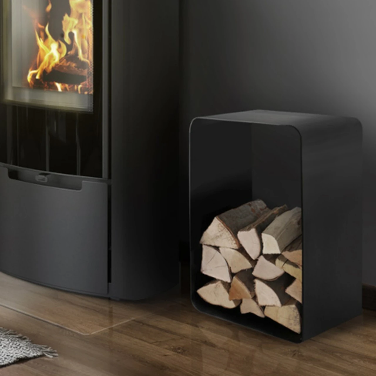 Sehr massive und elegante O-förmige Holzablage aus 3 mm starkem Stahl, pulverbeschichtetem lackiert.