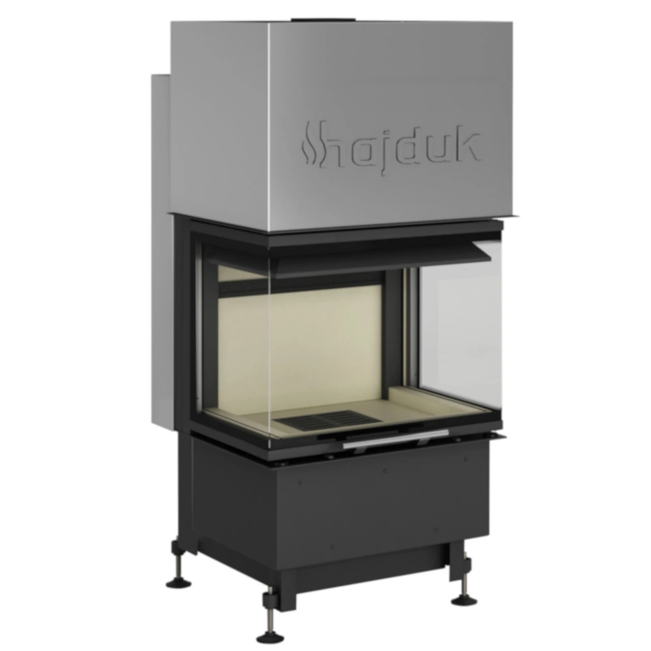 Die Kamineinsätze von Hajduk werden aus einer zweimanteligen Stahl konstruktion hergestellt, ohne Dichtungsmaterialien oder Schrauben, alles wird fest miteinander verschweißt. Die Feuerstelle ist mit 5 cm dicken Schamottesteinen ausgekleidet, diese speichert die Wärme und gibt diese gleichmäßig nach erlischen des Feuers wieder ab. Der Kamineinsatz ist für eine langfristige, störungsfreie und ökonomische Nutzung gebaut.