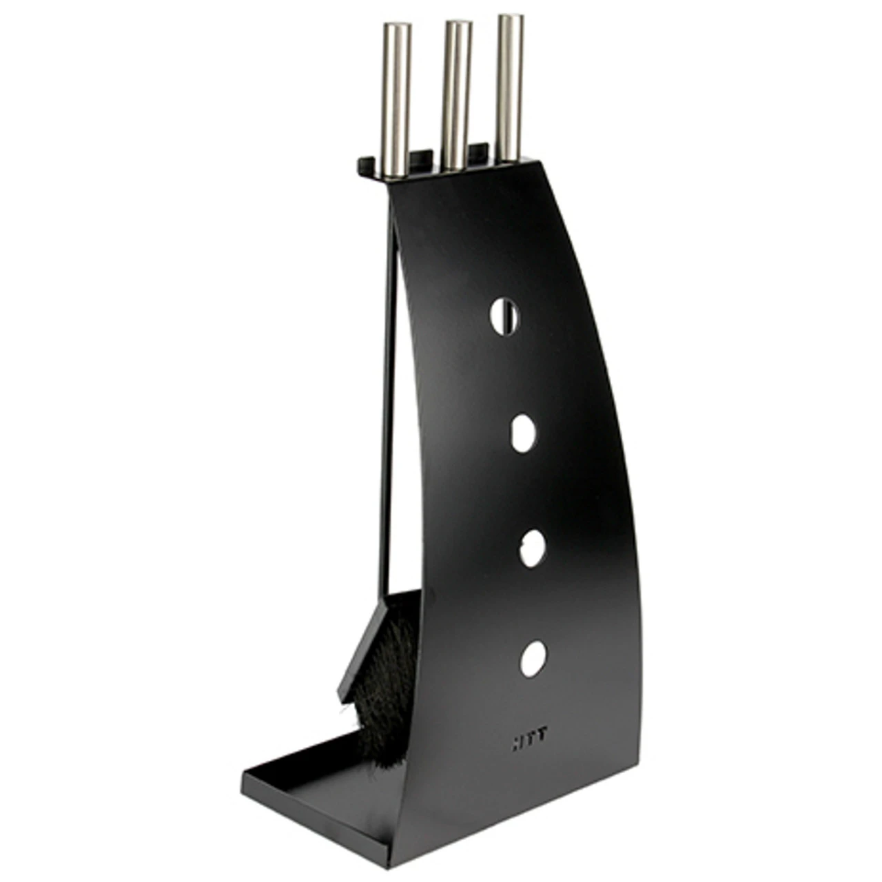 Das Set besteht aus einem Ständer, einer Schaufel, einem Besen und einem Schürhaken.