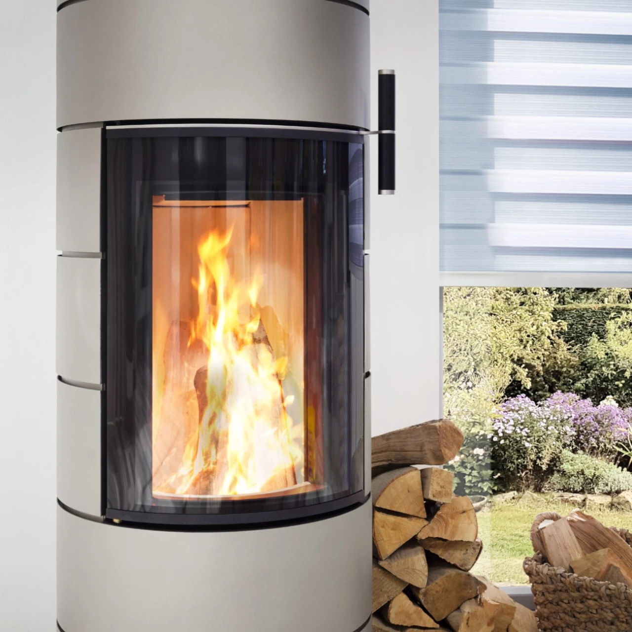 - Ergonomischer kühler Holzgriff – Bedienung des Kamins ohne Handschuhe möglich