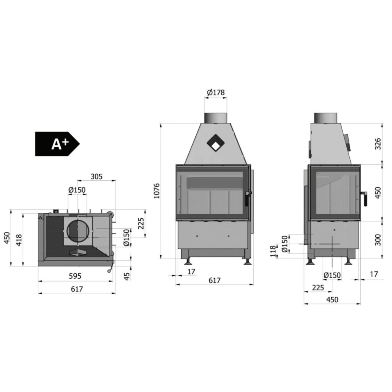 - Durchmesser Anschluss externe Luftzufuhr: 150 mm